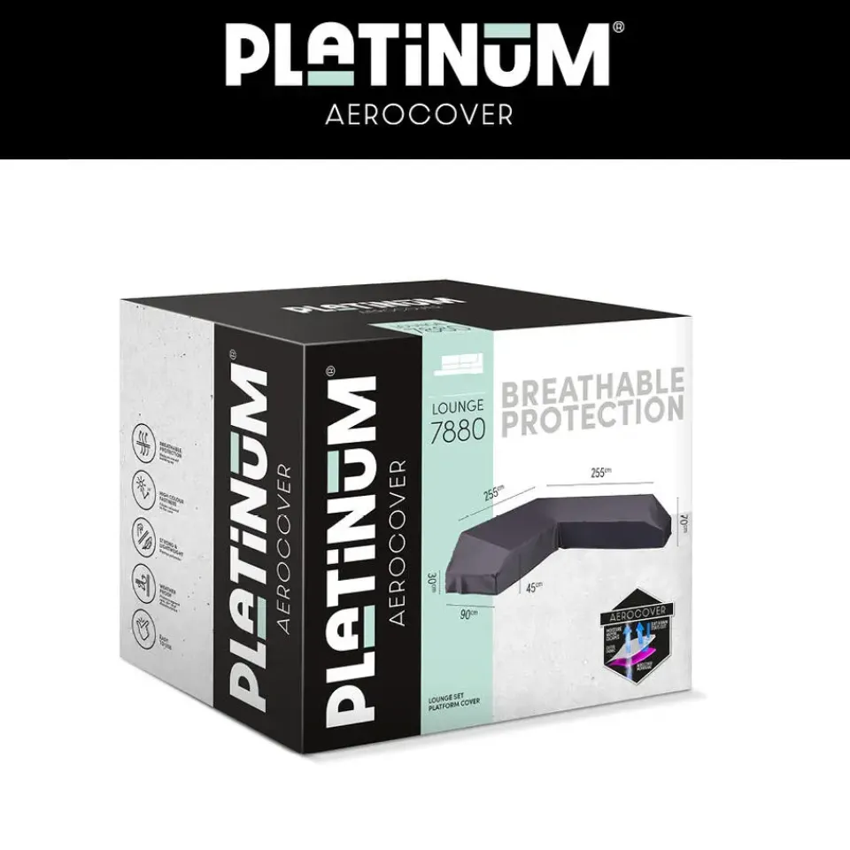Bescherm uw loungeset optimaal met de platofrm loungesethoes van het bekende hoezen merk Aerocover. Het voordeel ten opzichte van een vierkante hoes is dat er in een l vormige hoes geen waterzakken kunnen ontstaan en de hoes dus ook niet door kan gaan lekken. Het materiaal van de hoes is ripstop polyester, dit is erg soepel en stevig. Het rasterpatroon, de vierkantjes zoals op de detailfoto is te zien, zorgt ervoor dat als er in de toekomst een gat in de hoes zal komen deze niet door kan scheuren. Als het vochtig weer is of de temperatuur snel verandert raden wij aan om de kussens droog op te bergen. Door grote temperatuurverschillen kan er namelijk vocht in de kussens, op de grond of stoep onder het tuinmeubel ontstaan. Dit vocht kan dan veranderen in condens, wat tegen de binnenkant van de beschermhoes komt en uiteindelijk in de kussens trekt. Om te voorkomen dat je kussens vochtig worden en mogelijk gaan schimmelen, is het slim om ze bij dit soort weersomstandigheden binnen op een droge plek te bewaren.