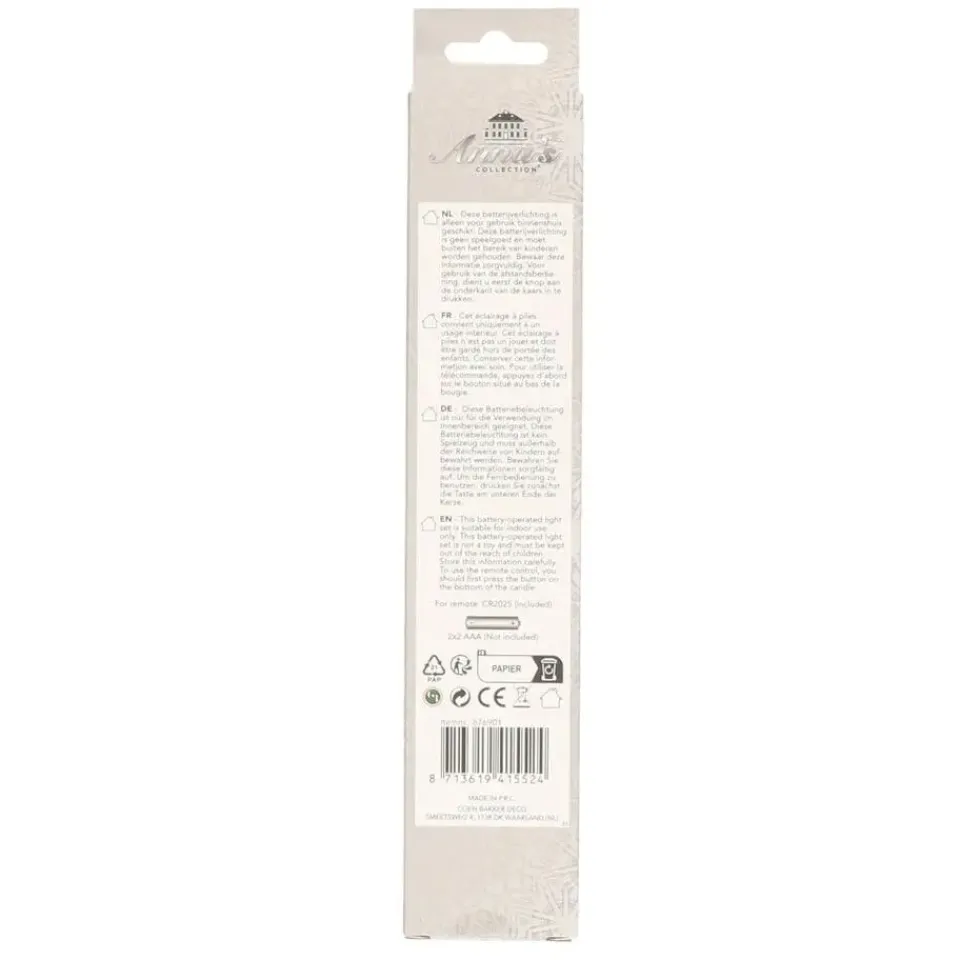 - Voeding: 2 AA batterijen per kaars (niet inbegrepen)