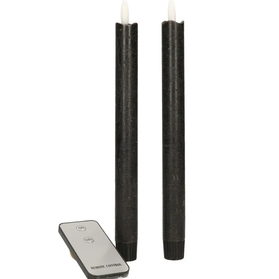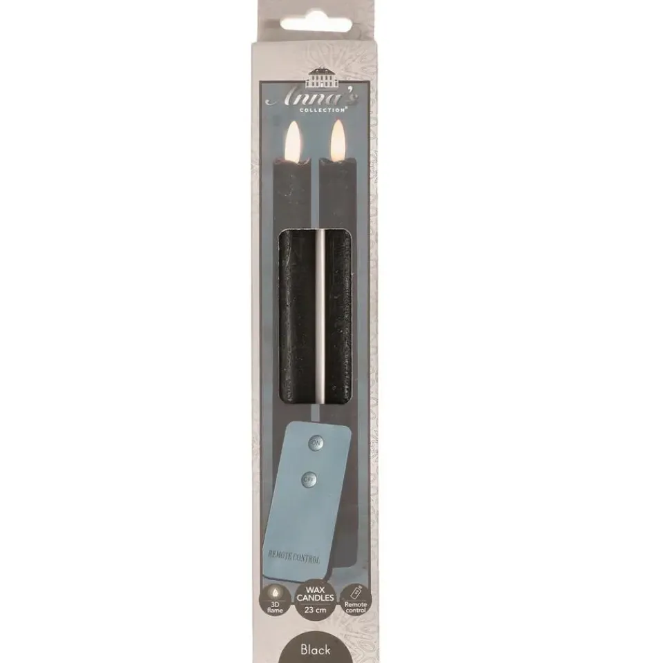 Anna’s Collection LED dinerkaarsen set van 2x stuks Led dinerkaarsen inclusief afstandsbediening 23 cm. Type kaars: druipkaarsen rustiek met bewegende vlam. Voeding per kaars: 2 AAA batterijen (niet inbegrepen). Kleur licht: warm wit.