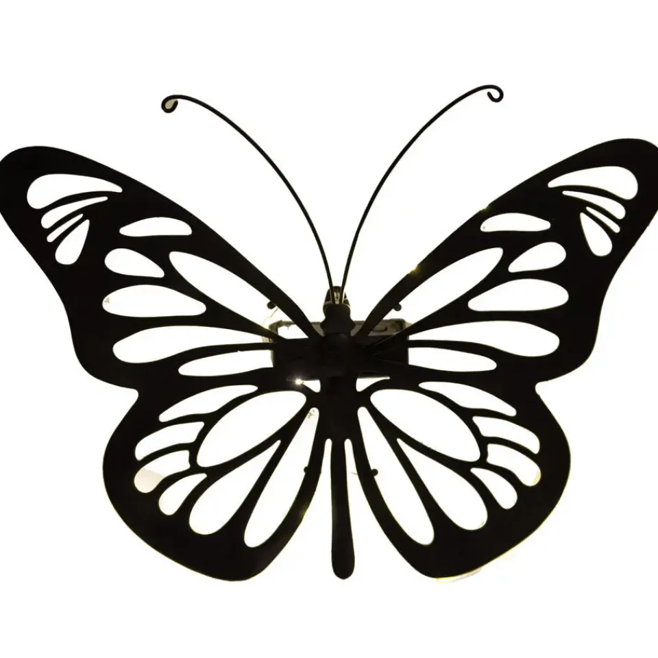 Fleur je tuin op met deze gezellige wandlamp/wanddecoratie vlinder! Bevestig de vlinder aan een muur of schutting bij je terras om altijd te genieten van de sfeerverlichting. De brandduur hangt af van de weersomstandigheden, 8 uur volle zon zorgt voor een maximaal aantal branduren. De buiten lamp heeft warm wit licht.