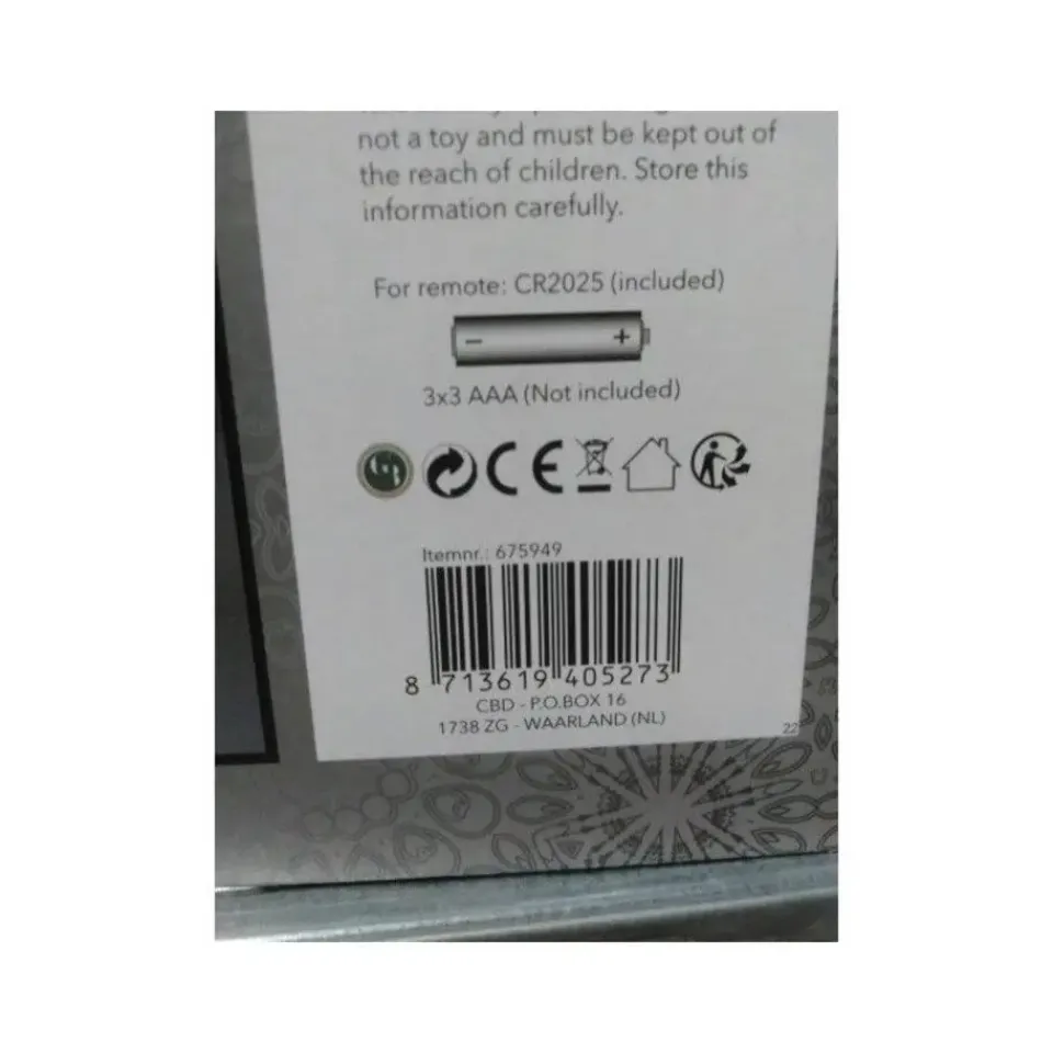 - Voeding: AAA batterijen (niet inbegrepen)