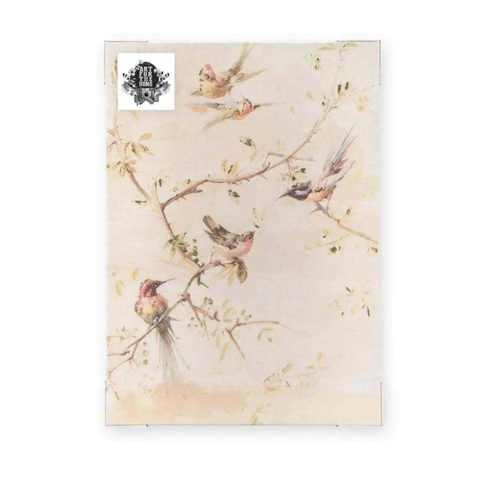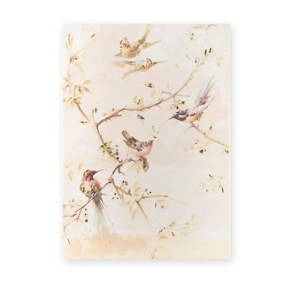 Het handgeschilderde canvas Sunset birds nodigt uit om even te pauzeren, te ontspannen en te genieten van de sereniteit die het met zich meebrengt.