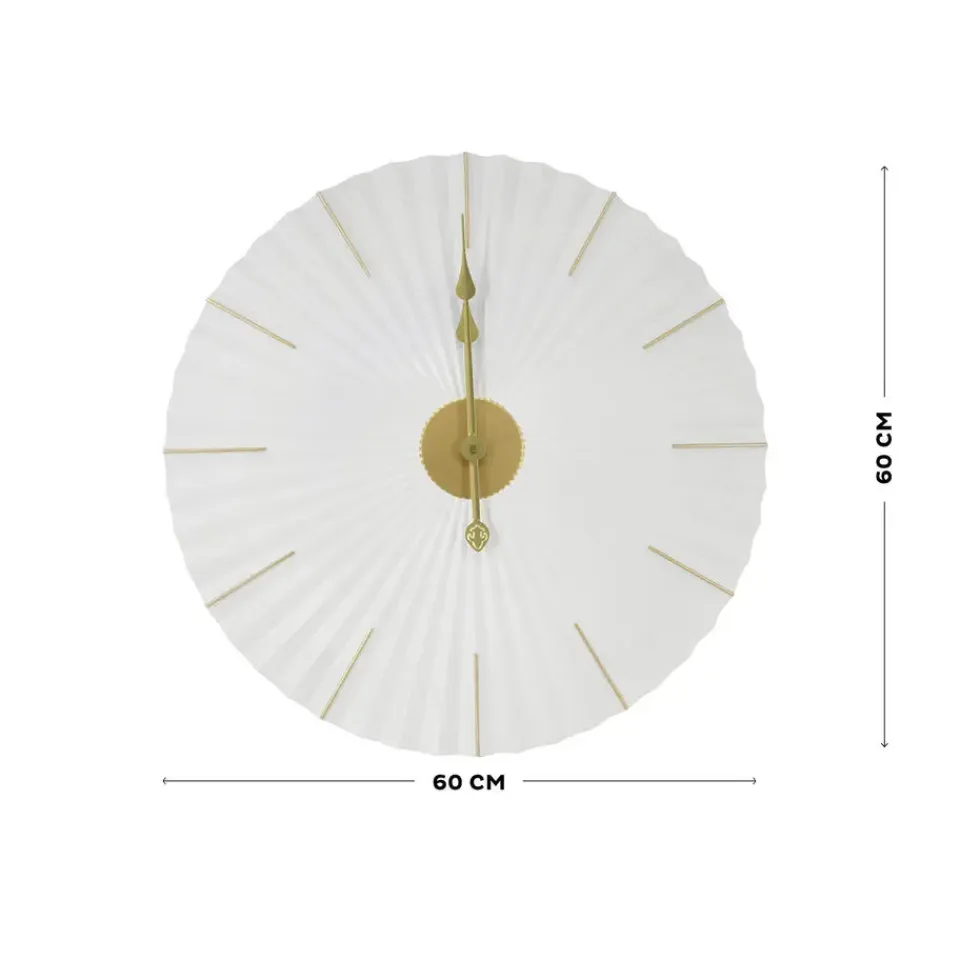 Met een diameter van 60 cm is deze klok een echte eyecatcher voor elke kamer. De combinatie van het frisse wit en het chique goud zorgt voor een luxe en harmonieuze uitstraling. Perfect om zowel een moderne woonkamer, een lichte hal als een sfeervolle slaapkamer compleet te maken.