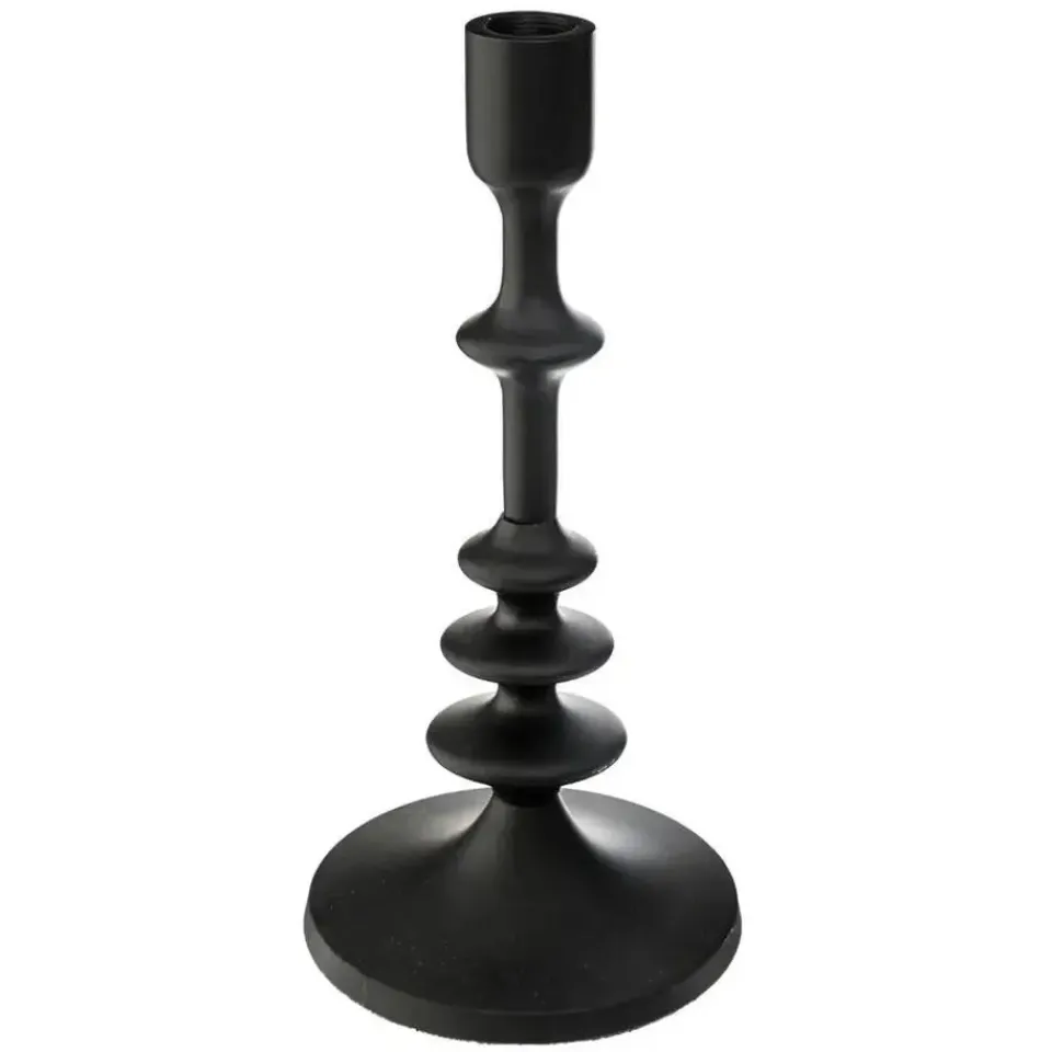 De kandelaar heeft een brede voet voor extra stabiliteit en een tijdloos design dat naadloos past in vrijwel elk interieur. De matte zwarte afwerking geeft een moderne, strakke uitstraling en maakt het een opvallend woonaccessoire. Ideaal voor sfeervolle verlichting op tafel, dressoir of vensterbank.