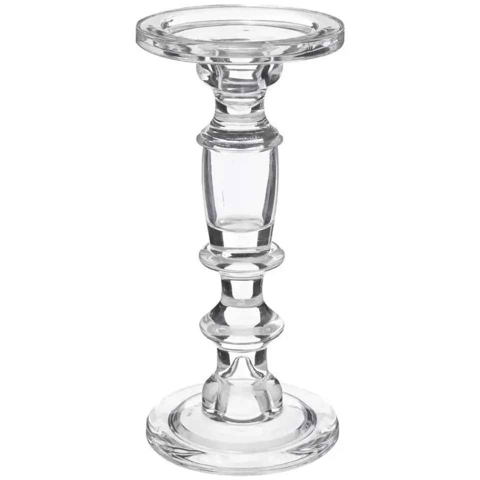 Kaarsen kandelaar Decoglass van decoratief luxe gevormd glas. Deze kandelaar is geschikt voor stompkaarsen. Kleur: transparant. De afmetingen zijn: D11 x H24 cm. Geschikt voor stompkaarsen met een dikte van 8 cm en kleiner. Merk: Atmosphera. Prachtige hoog model kandelaars op stevige voet, geschikt voor bijna alle interieur stijlen.