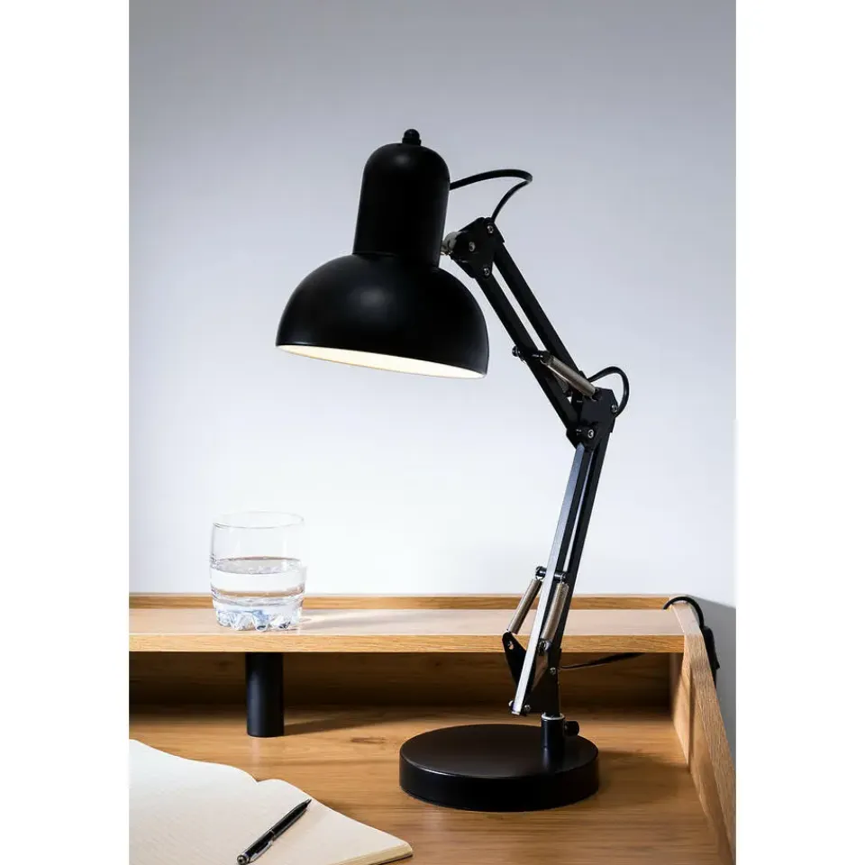 Atmosphera tafellamp – zwart – metaal – 16 x 56 cm – bureaulamp E27 fitting*De Atmosphera Design Light Classic bureaulamp in zwart is een elegante en praktische keuze voor je werk- of leesplek. Voorzien van een verstelbare arm, stevige verzwaarde voet en een snoer van 160 cm met schakelaar. Geschikt voor E27-fitting (max. 40W), lamp niet inbegrepen. Met een afmeting van 16 x 56 cm past deze lamp perfect op je bureau of nachtkastje.