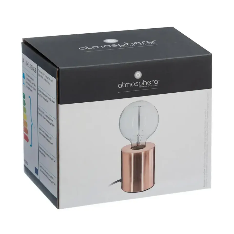 Tafellamp Saba in de kleur koper met afmetingen: B9 x H10 cm. Designlampje/leeslampje met netstroom snoer van 150 cm. Materiaal: metaal. Deze staande tafel of vensterbank lamp heeft een metalen voet om goed te kunnen staan. Fitting basic E27. Maximaal 40 watt. Exclusief de lamp.