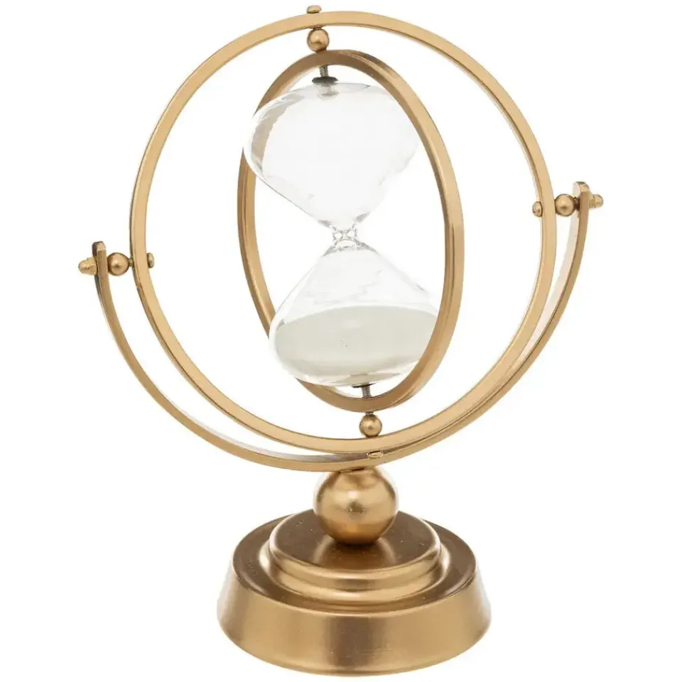 Zandloper cilinder Timer in de kleur goud met wit zand. Dit artikel kan ter decoratie of tijdsmeting gebruikt worden. Eenheid: 15 minuten. Afmetingen: D20 x H25 cm. Materiaal: glas en metaal. Mooi decoratief artikel met handige touch.