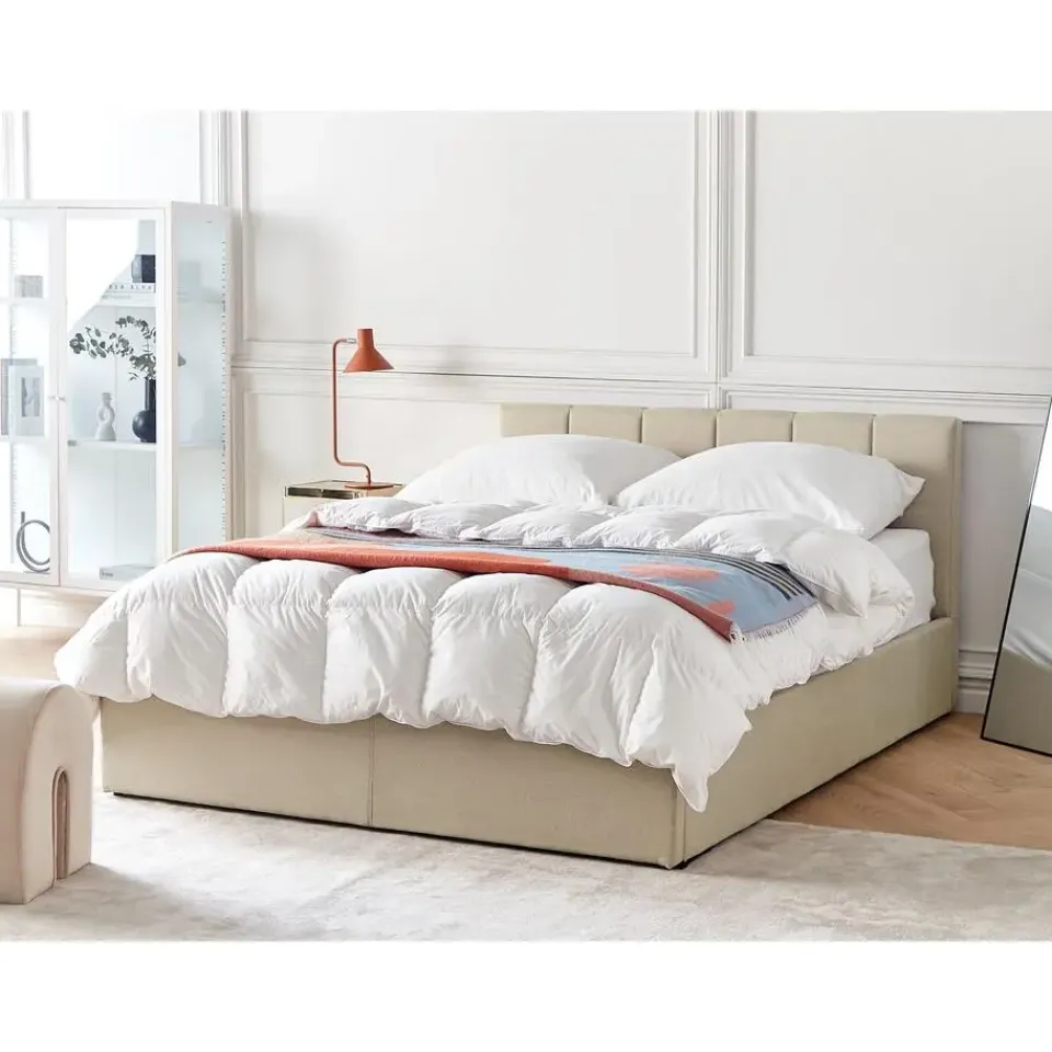 Belangrijkste eigenschappen: Schokabsorberende bedbodem voor goede ondersteuning, Stevig, duurzaam geïntegreerd frame, Minimalistisch, Scandinavische stijl, Past bij vele interieurstijlen, Hoogwaardige kwaliteit stoffering, Makkelijk te openen opbergvak door gasdrukveermechanisme