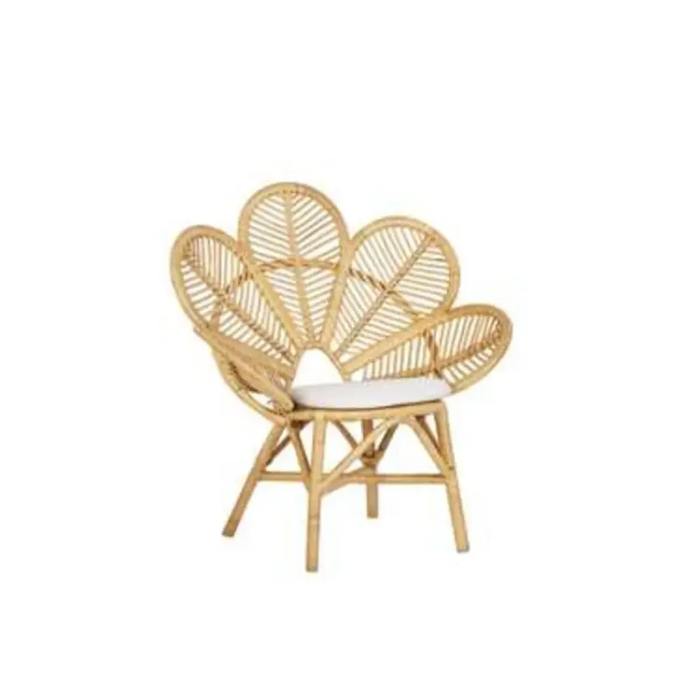 Belangrijkste eigenschappen: Praktische touwtjes voor gemakkelijke bevestiging aan de zitting, Geschikt voor binnen- en buitengebruik, Stevig gevlochten rotan, Verwijderbare kussenhoezen, Natuurlijke materialen, Lichtgewicht en makkelijk vervoerbaar