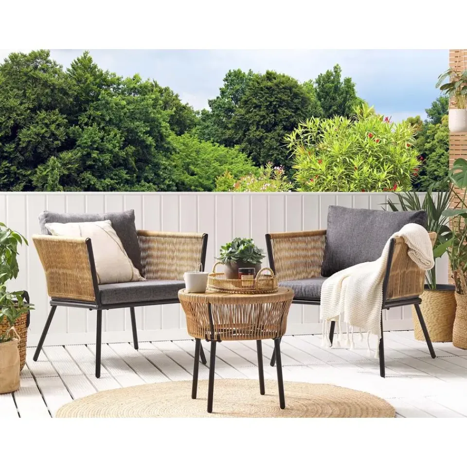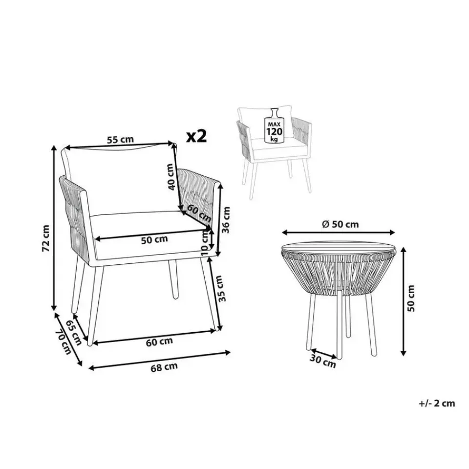 Tekst weerstand: Door de speciale afwerking is dit productoppervlak bestand tegen roesten. Dit product kan dus buitenshuis gebruikt worden. Wanneer de meubels niet in gebruik zijn, raden we je wel aan om ze onder een beschermhoes of op een droge plek te bewaren.