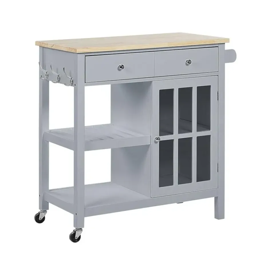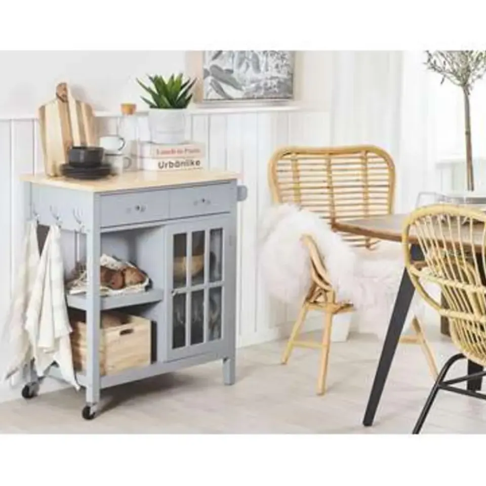 Belangrijkste eigenschappen: Past goed in de keuken en eetkamer, Gemakkelijk te verplaatsen dankzij de zwenkwieltjes, Met haakjes voor handdoeken en keukengerei, Hoogwaardig materiaal, Extra opbergruimte
