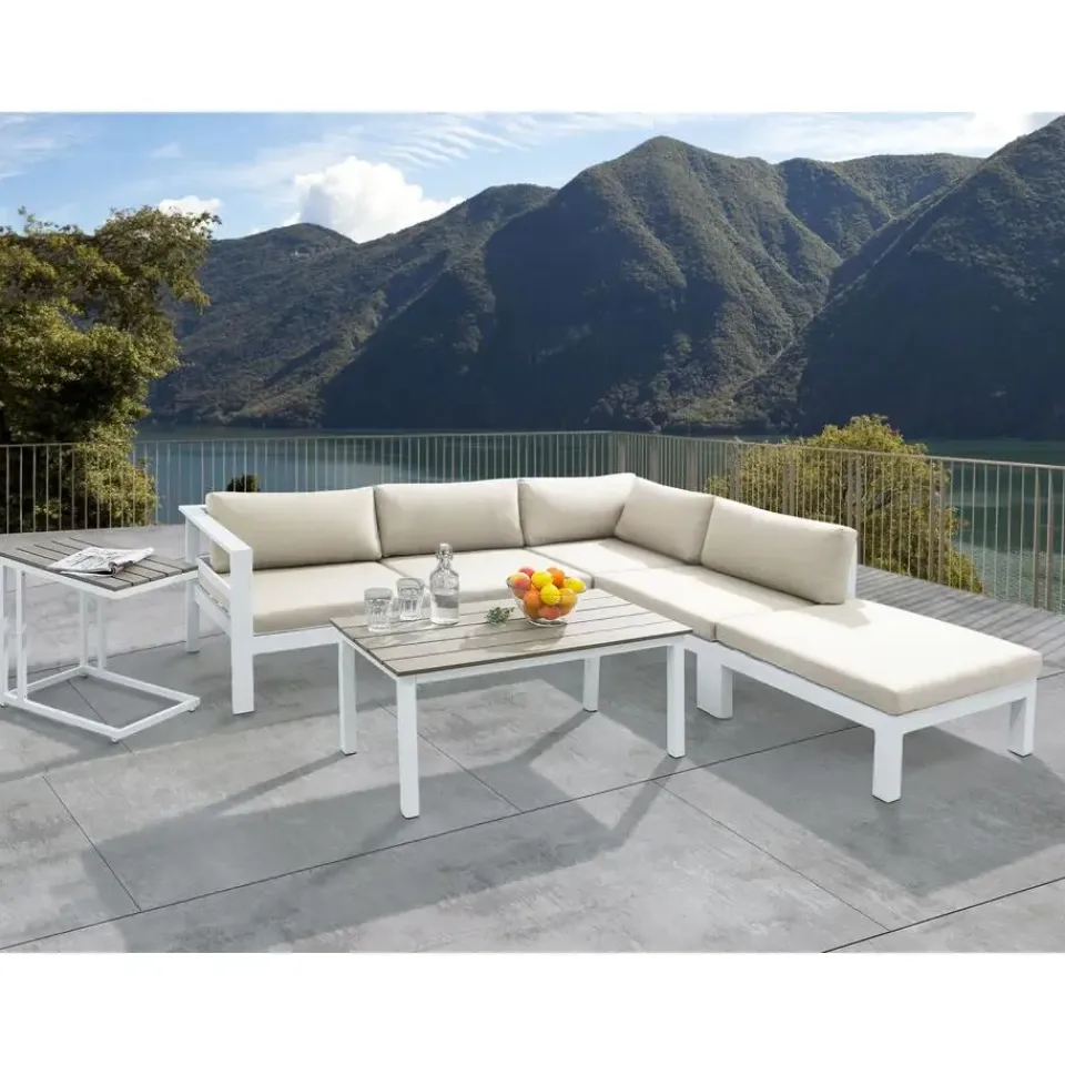 Belangrijkste eigenschappen: Uitstekende plek om te ontspannen, Modern terras- en tuinmeubilair, Hout-look finish voor een natuurlijke look, Onderhoudsvriendelijk en duurzaam materiaal, UV-bestendigheidsklasse 4 (ISO 105-B02), Roestvrijstalen frame, Verwijderbare kussenhoezen