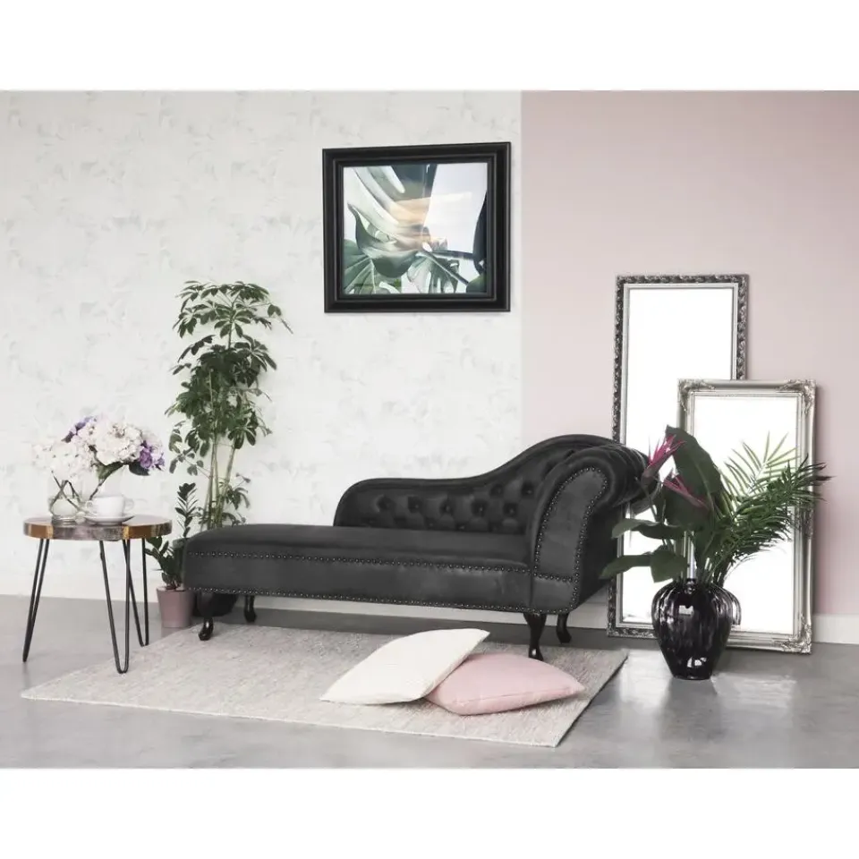 Belangrijkste eigenschappen: Ontspannende zitpositie, Perfect voor zowel slaapkamer als woonkamer, Stijlvolle Chesterfield-look, Stijlvolle klinknageldecoratie aan de rand, Versiert met knoopdetails, Rondom bekleed en dus vrij op te stellen