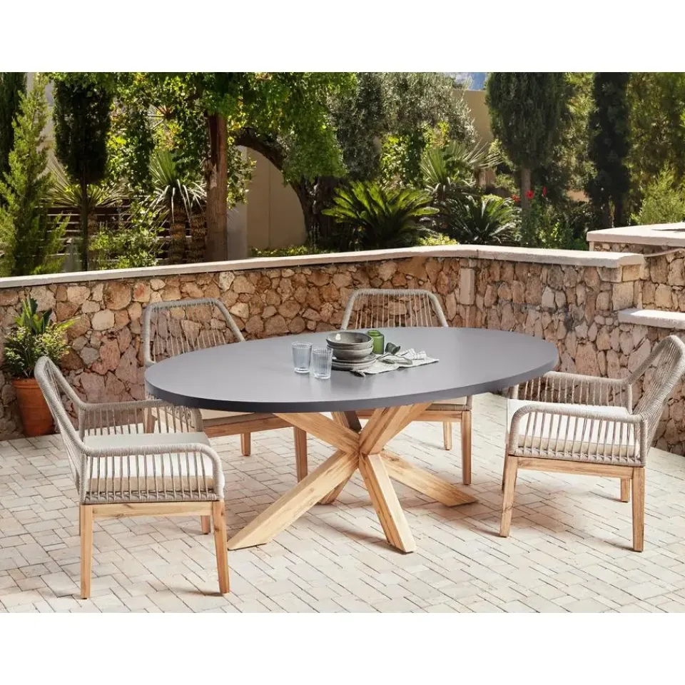 Beliani ORISTANO – Tuintafel – Lichthout/Grijs – 190 x 100 cm – Beton