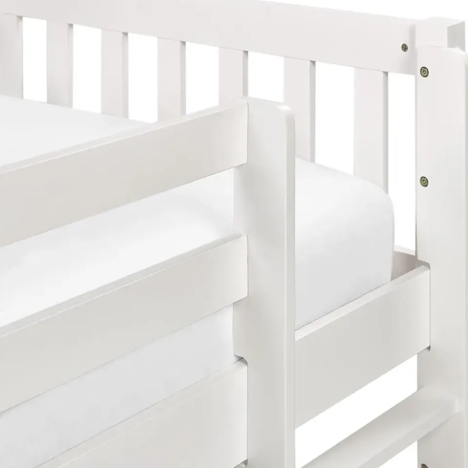 Extra informatie: Het product is geschikt voor een matras met een maximale hoogte van 16 cm. Dit product is ontworpen en getest om te voldoen aan de strenge veiligheidseisen van het EN 747-1 certificaat, waardoor de stabiliteit, duurzaamheid en algemene veiligheid tijdens het gebruik gegarandeerd zijn. Dit product is vervaardigd in overeenstemming met de REACH-regelgeving en voldoet aan strenge Europese chemische veiligheidsnormen, zodat alle gebruikte materialen voldoen aan strenge eisen op het gebied van milieu- en gezondheidsbescherming. Kinderen jonger dan 6 jaar mogen het bovenste bed niet gebruiken. Houd er rekening mee dat het product om veiligheidsredenen aan de muur moet worden bevestigd. Hout is een natuurlijk materiaal, dus ondanks de kleurlaag blijven de fijne, natuurlijke structuur en het bijzondere uiterlijk van het houtoppervlak behouden.