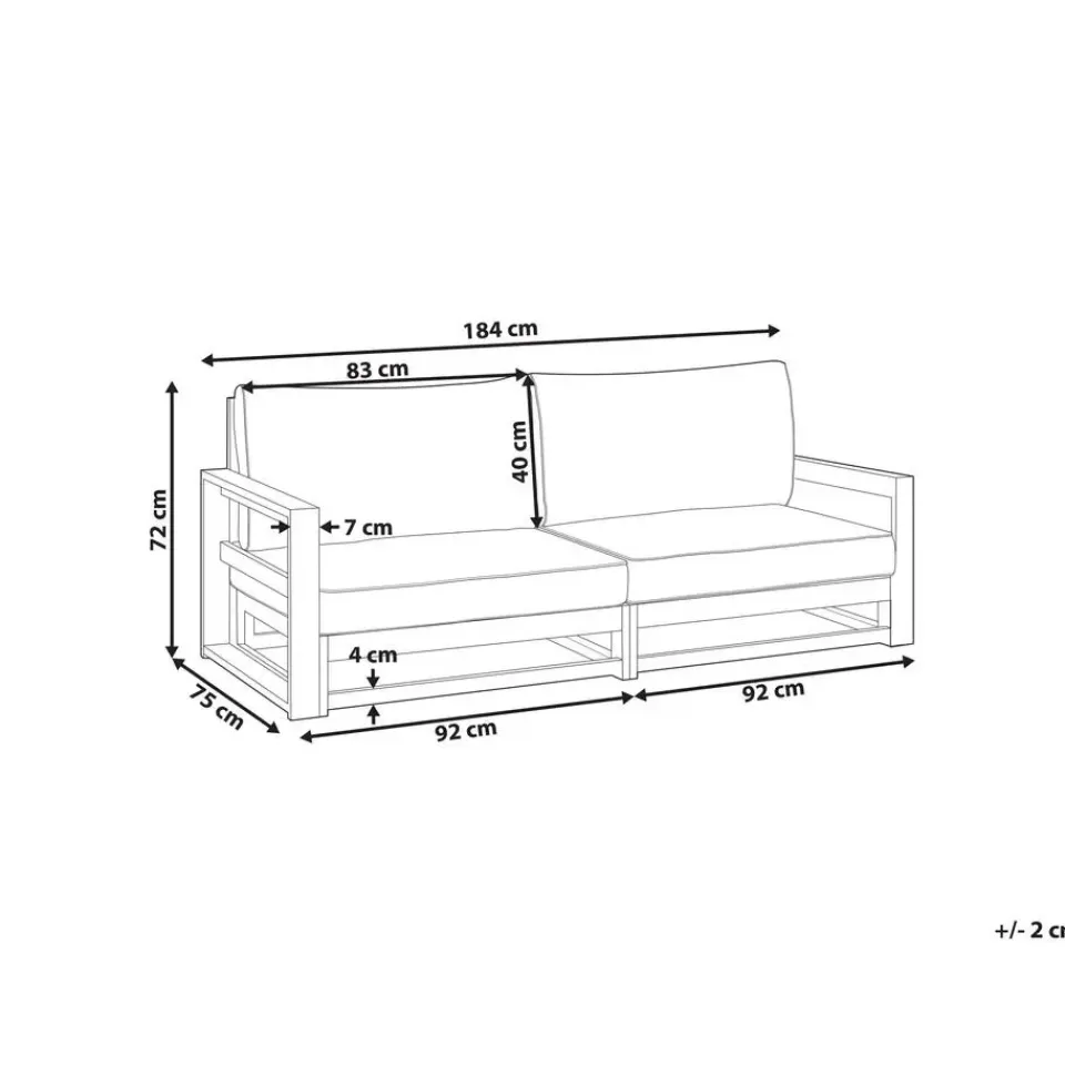 Aanbod omvat: 1 x Tweezitsbank, Kussens inbegrepen