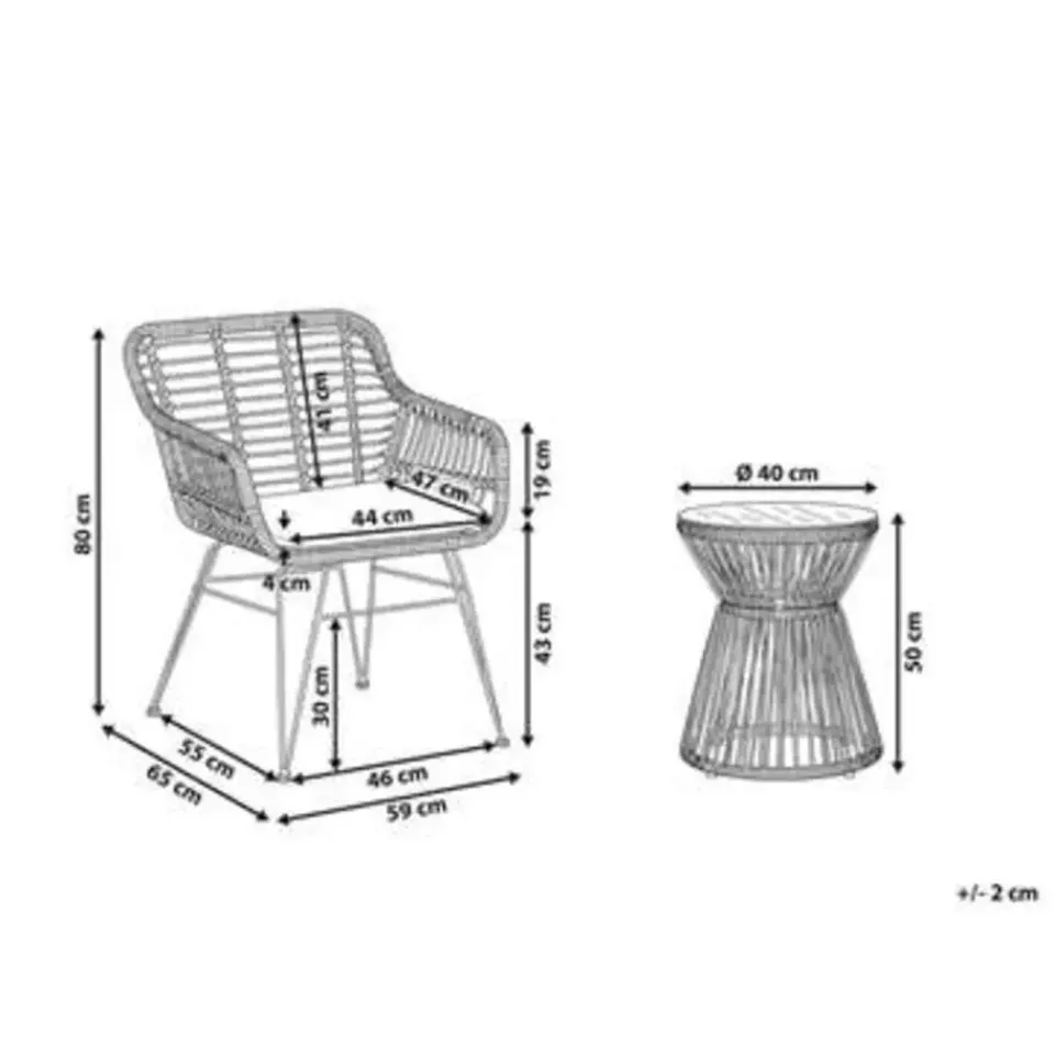 Aanbod omvat: 1 x Salontafel, 2 x Stoel, 2 x Zitkussen
