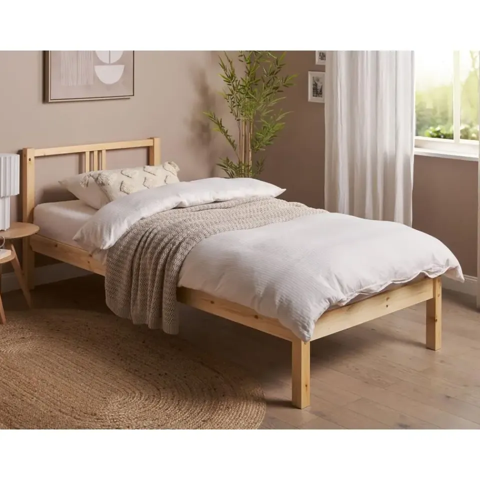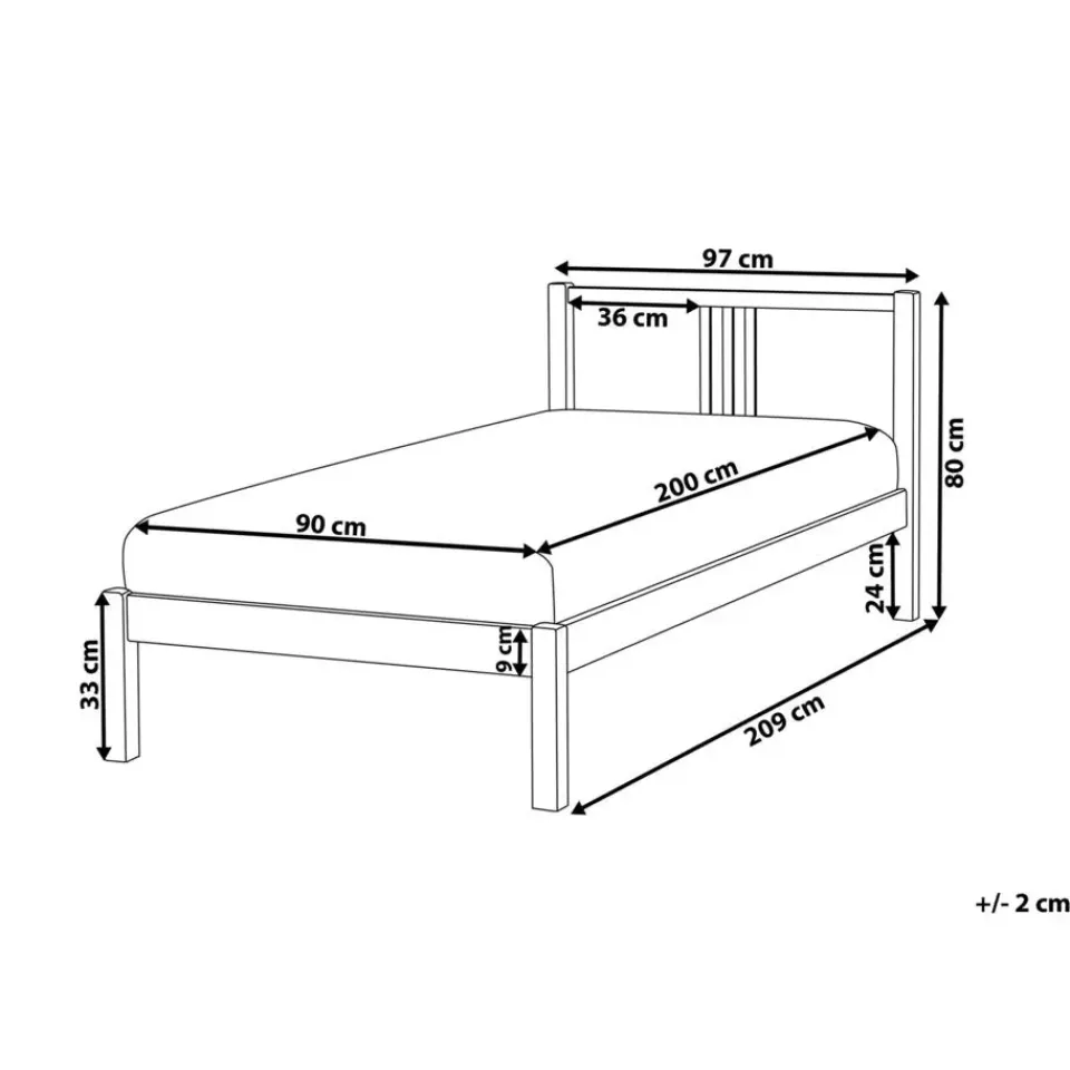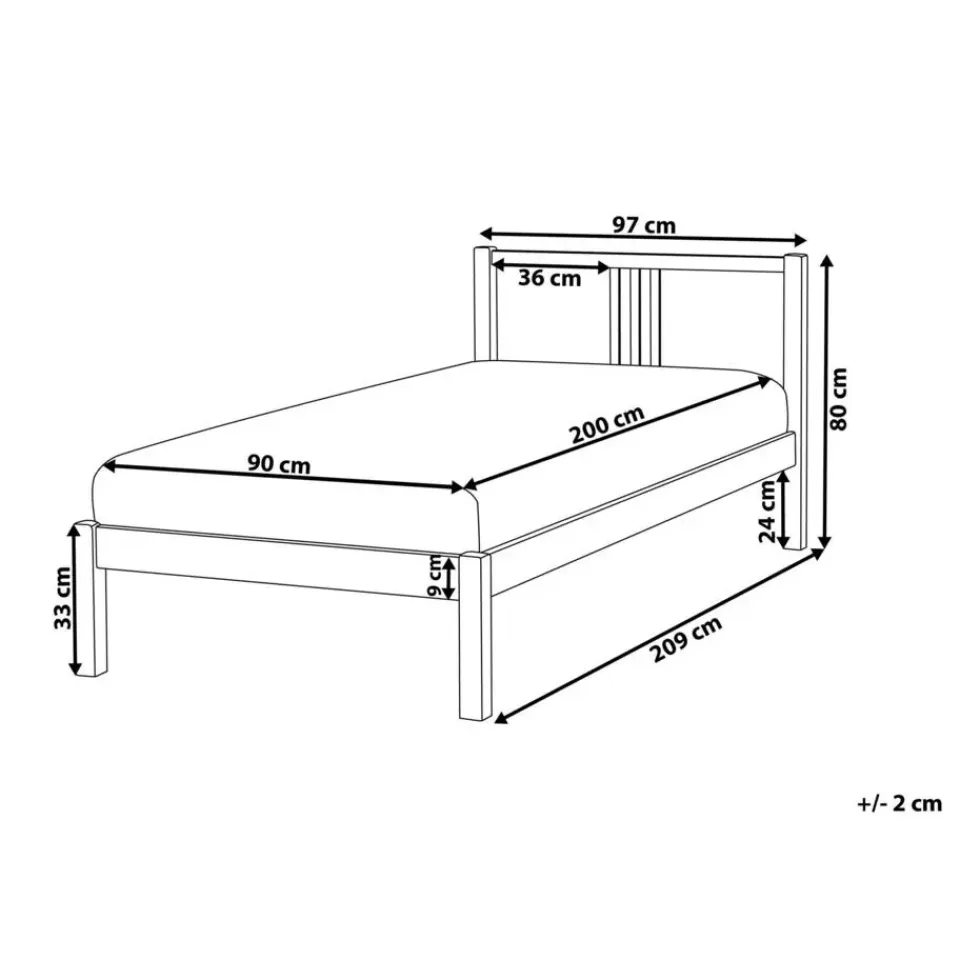 Extra informatie: Vanwege het ontwerp van het bed, raden we aan een matras te gebruiken die maximaal 20 centimeter hoog is. Hout is een natuurlijk materiaal, dus ondanks de kleurlaag blijven de fijne, natuurlijke structuur en het bijzondere uiterlijk van het houtoppervlak behouden. Hout is een natuurproduct. Kleur- en structuurverschillen, nerven, knoesten, barsten en andere natuurkenmerken zijn een bewijs van echtheid en geen fouten die recht geven op vervanging