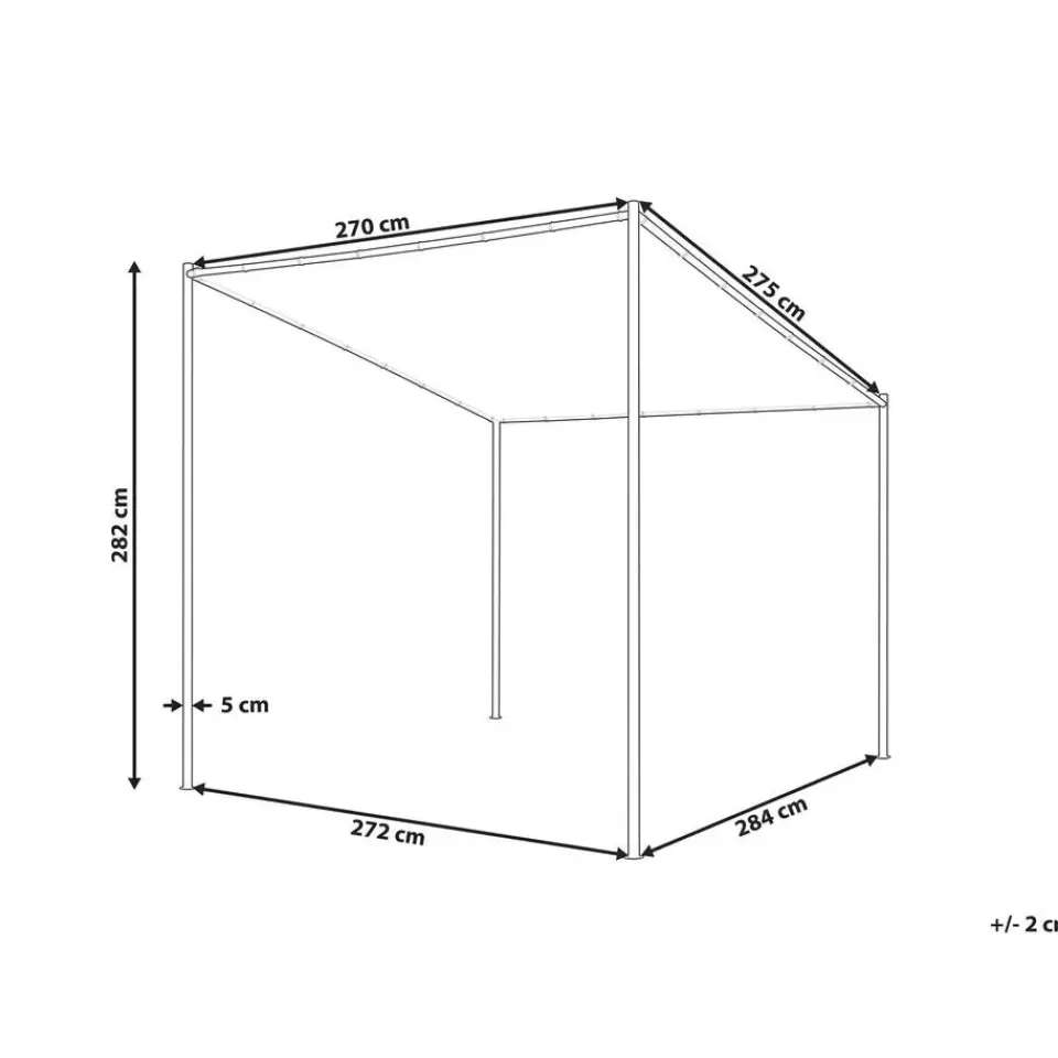 Extra informatie: Om veiligheidsredenen moet het paviljoen aan de grond worden vastgezet. De set bevat metalen haringen om het stuk op het gazon te bevestigen, maar het bevestigingsmateriaal voor andere oppervlakken is niet inbegrepen.