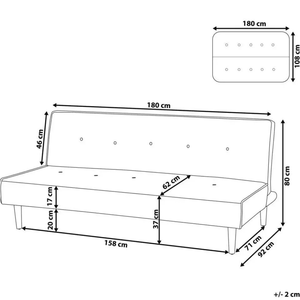 Belangrijkste eigenschappen: Zeer gemakkelijk te veranderen in een bed, Brede, comfortabele zitoppervlak, Past uitstekend in elk interieur, Minimalistisch, Scandinavische stijl, Hoogwaardige kwaliteit stoffering, De speciale bekleding zorgt voor eenvoudig en efficiënt reinigen, Verstelbare rugleuning