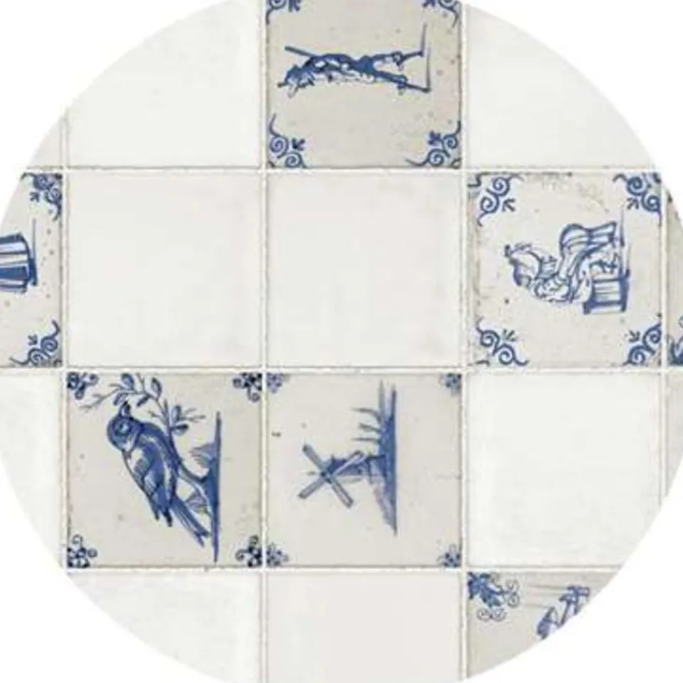Tafeldecoratie zeil met Delfts blauwe tegel print. Afmeting: 160 cm rond. Het tafelzeil valt het mooiste rondom een tafel van 120 cm, zorg bij een grotere tafel voor een minimale overhang van 10 cm. Materiaal: PVC met non-woven vliesrug. 100% waterdicht en valt soepel rondom de tafel. Enkel afnemen met een vochtige doek. Langdurige blootstelling aan diverse weersomstandigheden zal het zeil aantasten en/of doen verkleuren. Geschikt voor zowel binnen als buitenshuis.