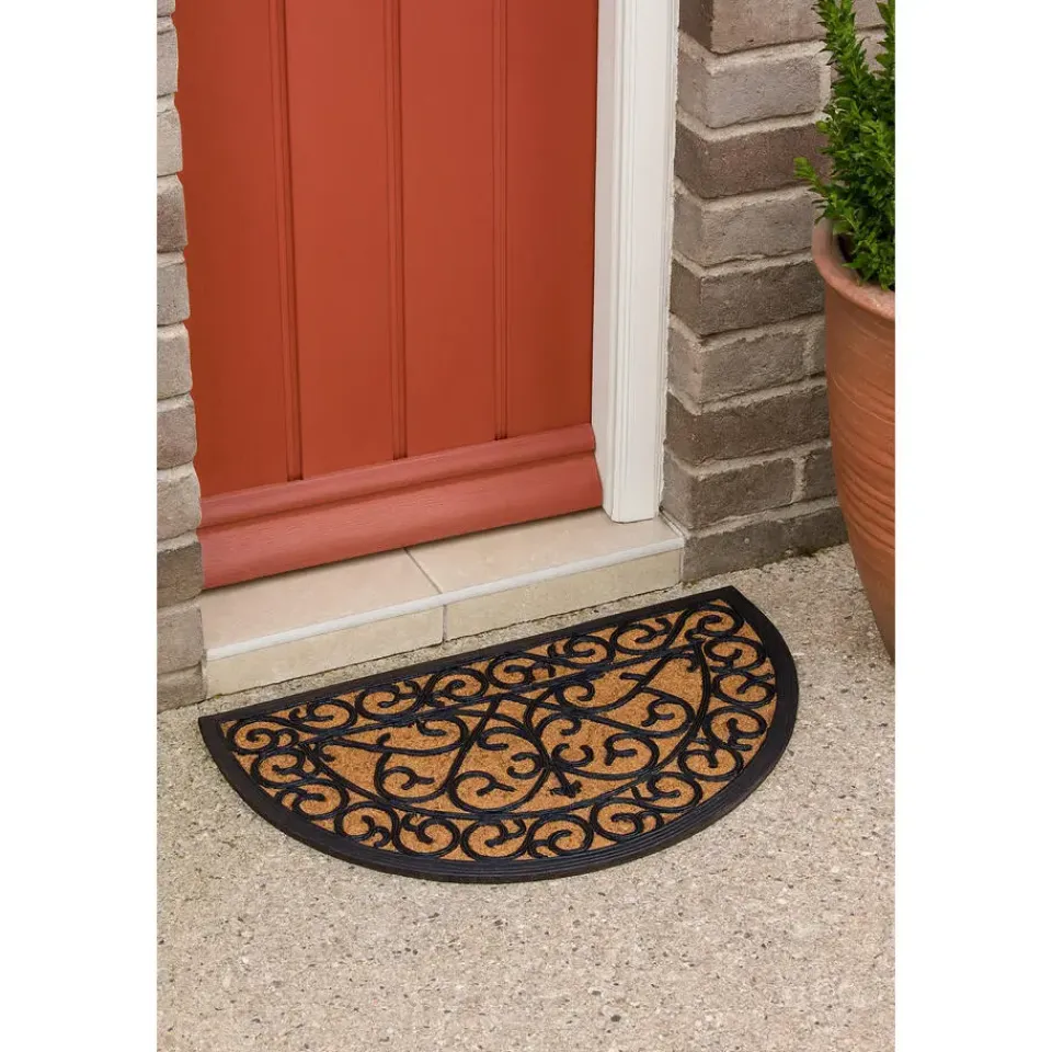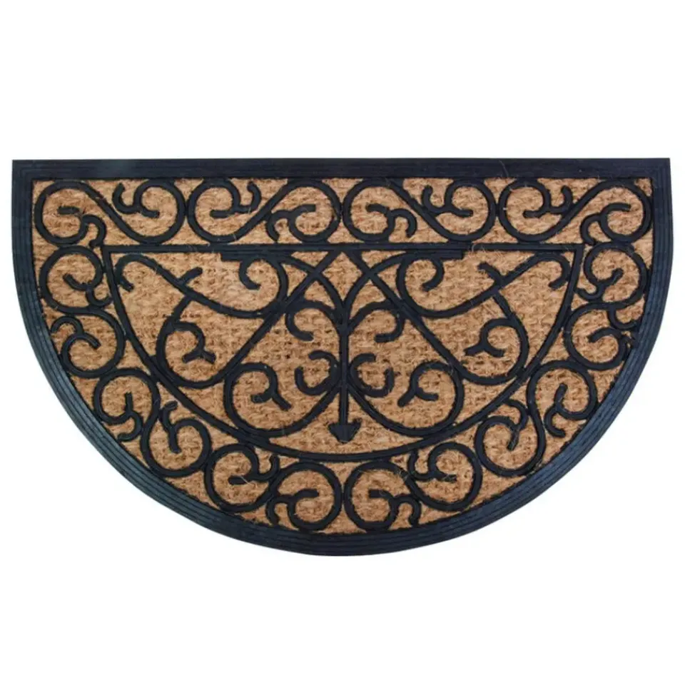 Halfronde deurmat van rubber en kokos voorzien van een klassiek patroon. Het formaat van deze klassieke mat is: 45 x 75 x 1,1 cm. Deurmatten schoonloopmatten.