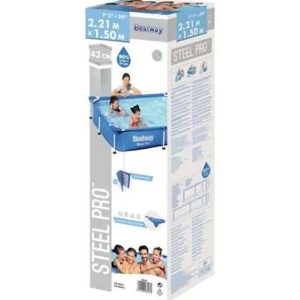 Beleef veel plezier in je achtertuin in dit Bestway Steel Pro zwembad! De extra sterke zijwanden van dit zwembad zijn gemaakt van Tritech. Het is een 3-laags versterkt materiaal, bestaande uit gelamineerd, robuust PVC en polyester mesh, waardoor de zijwanden extra dik zijn en superieure kracht en duurzaamheid bieden. Het bovengrondse zwembad heeft een corrosiebestendig stalen frame. Dankzij het ingebouwde afvoerventiel is het eenvoudig om het water uit het zwembad te laten lopen. Het zwembad is snel en eenvoudig op te zetten. Leg het op een vlakke ondergrond, installeer het frame en vul het met water. Het zwembad is eenvoudig op te vouwen voor opslag en transport.