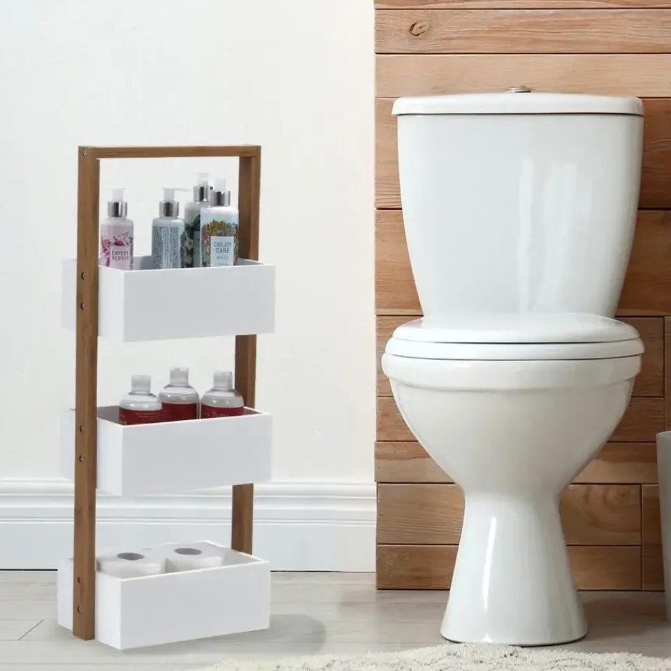 Ontdek de rechte bamboe plank met 3 dienbladen. Het originele en praktische ontwerp zal een nuttige opbergruimte toevoegen aan uw kamer. De atypische vorm van de rechte plank zal ook een onmiskenbare charme aan uw interieur brengen. Toiletmeubel of slaapkamerplank, met zijn mix van hout en bamboe, zal de rechte bamboe plank gemakkelijk zijn plaats vinden in elk type interieur. Materiaal : Hout & bamboe Afmetingen : B 28,5 x D 15 x H 66 cm