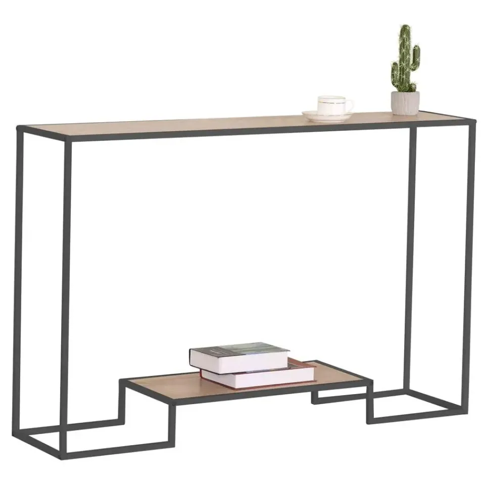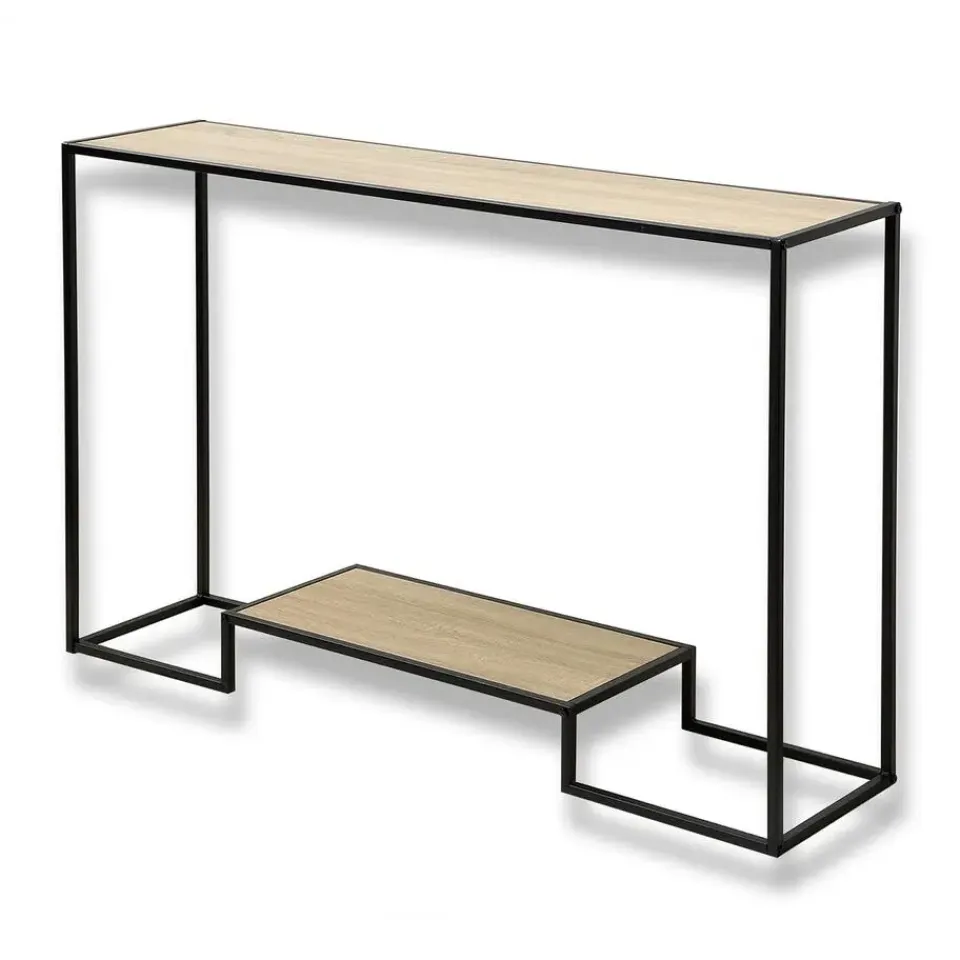 Ontdek onze moderne 2 laags consoletafel – eiken decor L120cm – het ideale meubelstuk om uw inkomhal, uw gang of uw woonkamer mee in te richten. Met zijn tijdloze industriële stijl en moderne design past deze console in elke omgeving en in elke kamer van het huis! Dit meubel is gemaakt van resistente houten panelen bedekt met een imitatie eiken afwerking. De structuur is gemaakt van mat zwart staal. De structuur is gemaakt van zwart mat staal, dus hij zal lang meegaan! De console heeft een grote hoofdplank voor het opbergen van uw spullen, uw post en uw decoraties. Het heeft ook een tweede lade om bijvoorbeeld een mand in te zetten! Dit meubelstuk komt bij u thuis in kitvorm met instructies en alle nodige schroeven en bouten, u hebt maar weinig tijd nodig om het op te zetten! Kenmerken van de kleerkast: Materialen: 12 mm resistente spaanplaat / Zwart mat stalen structuur. Afmetingen: B 120 x D 30 x H 80 cm . Gewicht : 8,2 Kg