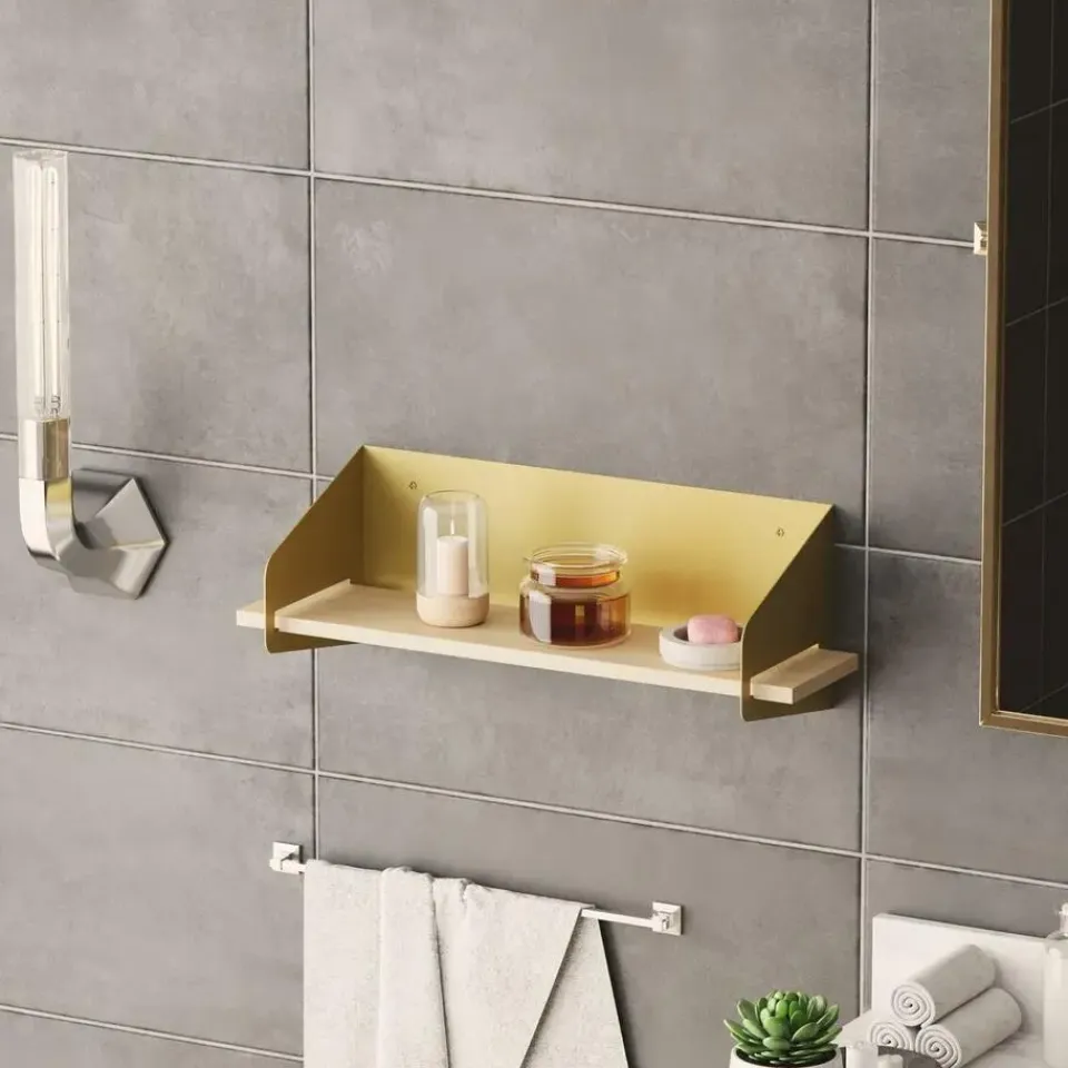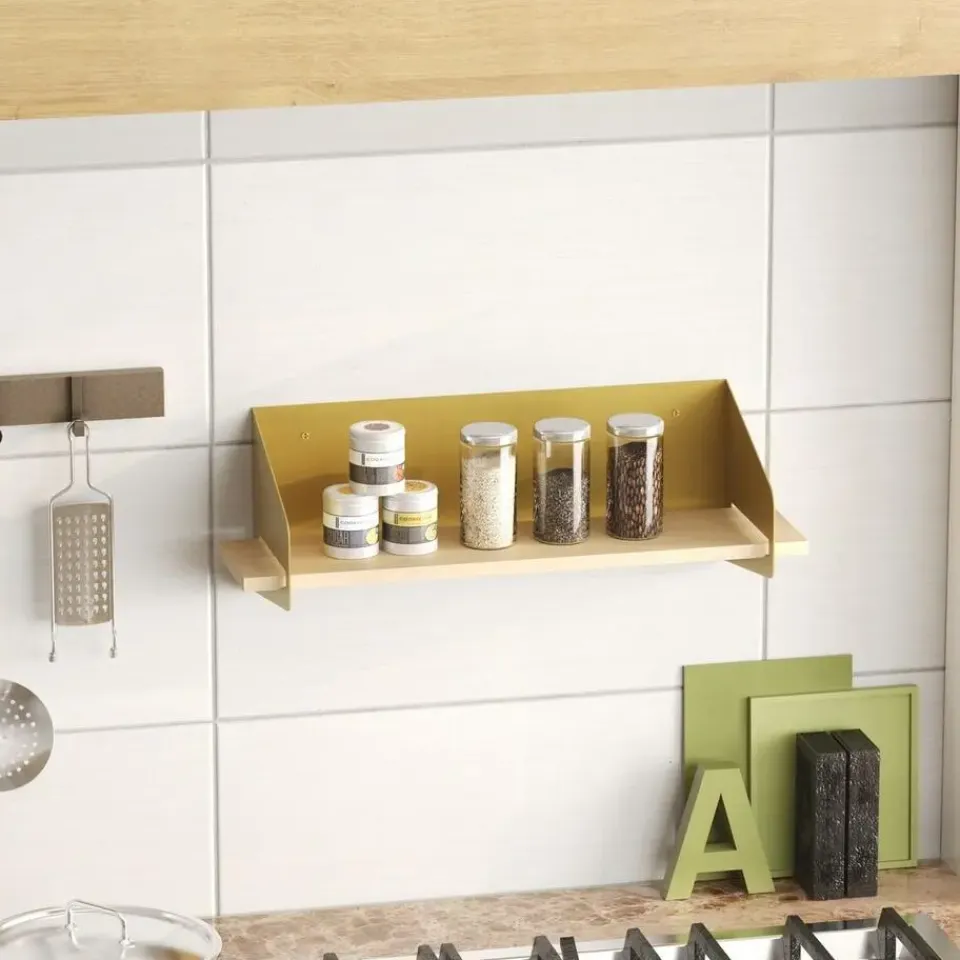 - Wandplank met legplank van massief grenen.