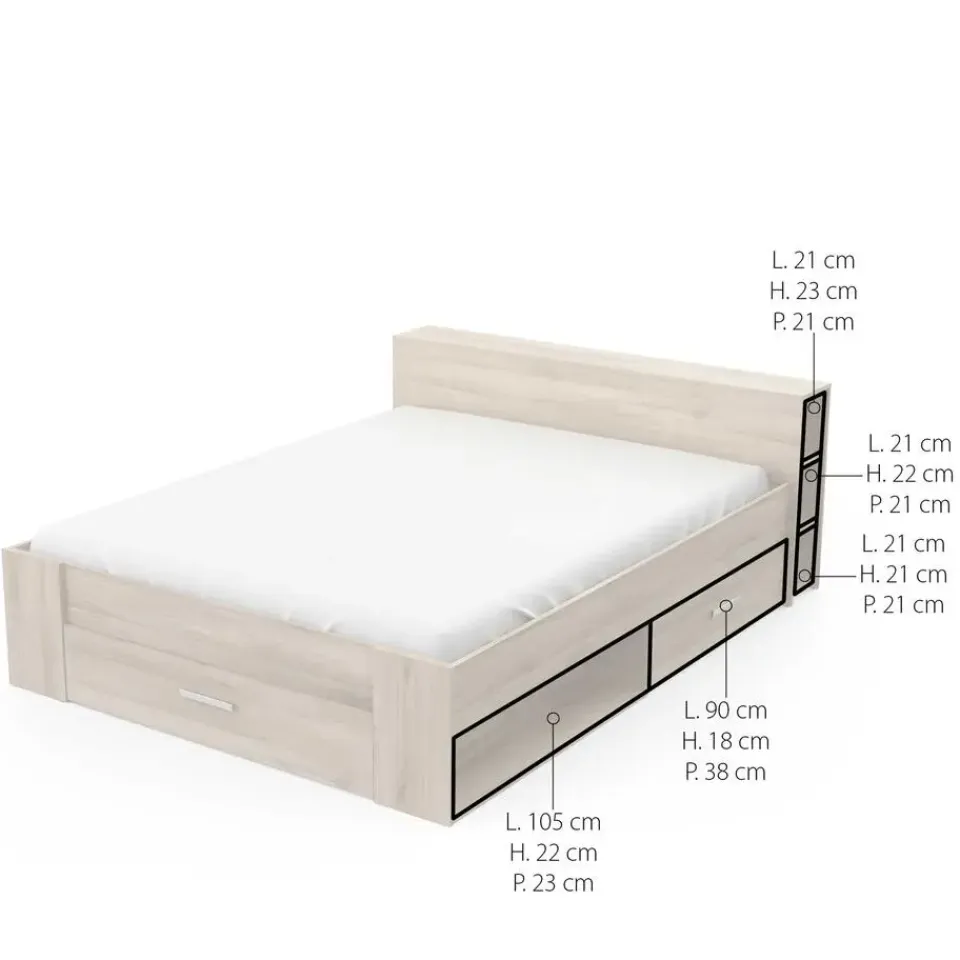 CBA Bed Polly 160 x 200 cm-Kronberg eik Clearance