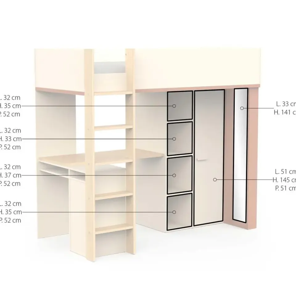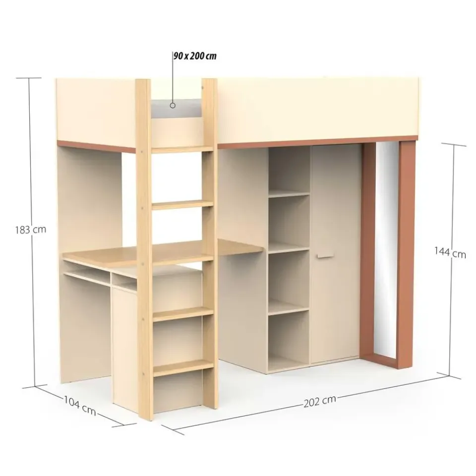 - Drie functies: bureau + bed + kast. Robuust en duurzaam ontwerp, ruimtebesparend, modern en gezellig design.