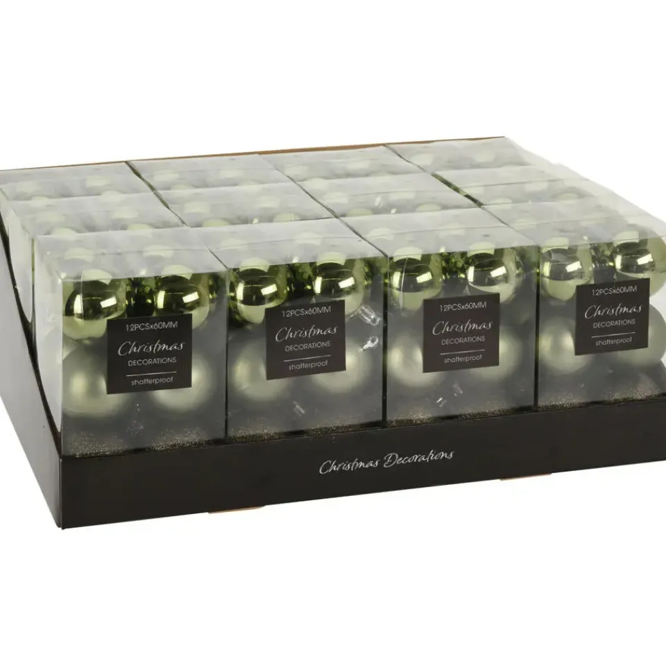 12x stuks kerstballen mix groen tinten kunststof 6 cm. Kerstversieringen voor in een kerstboom. De kerstballen hebben standaard lusjes, wij adviseren echter kerstbalhaakjes.