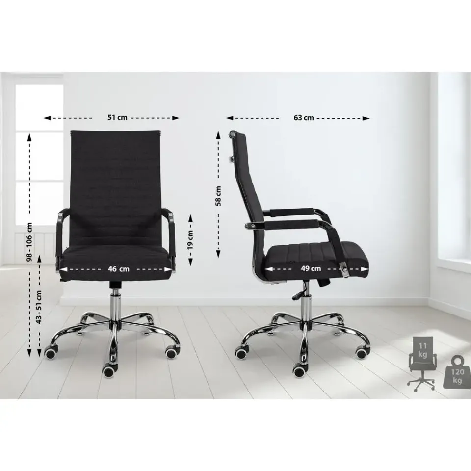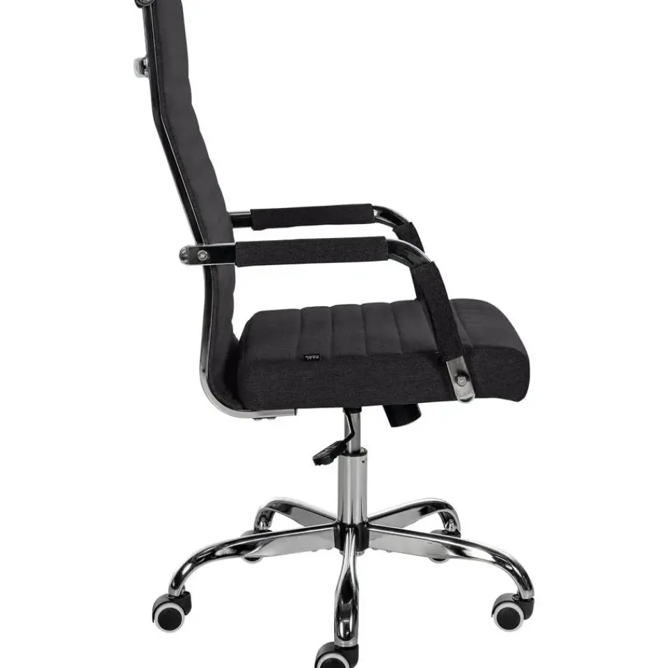 Deze bureaustoel Amadora overtuigt niet alleen met zijn moderne uitstraling, maar ook op het gebied van comfort. De hoogwaardige en onderhoudsvriendelijke kunstlederen bekleding zorgen voor een aangenaam zitervaring, zelfs gedurende meerdere uren. Bovendien is de zithoogte traploos instelbaar en garandeert ergonomisch zitten. Bovendien is de bureaustoel uitgerust met een kantelmechanisme dat meer bewegingsvrijheid biedt. De stabiliteit wordt gegarandeerd door het metalen frame in chroomlook. Met de vijf soepel lopende wielen kunt u zich gemakkelijk en losjes over de vloer verplaatsen. of het nu gaat om harde of zachte ondergrond.