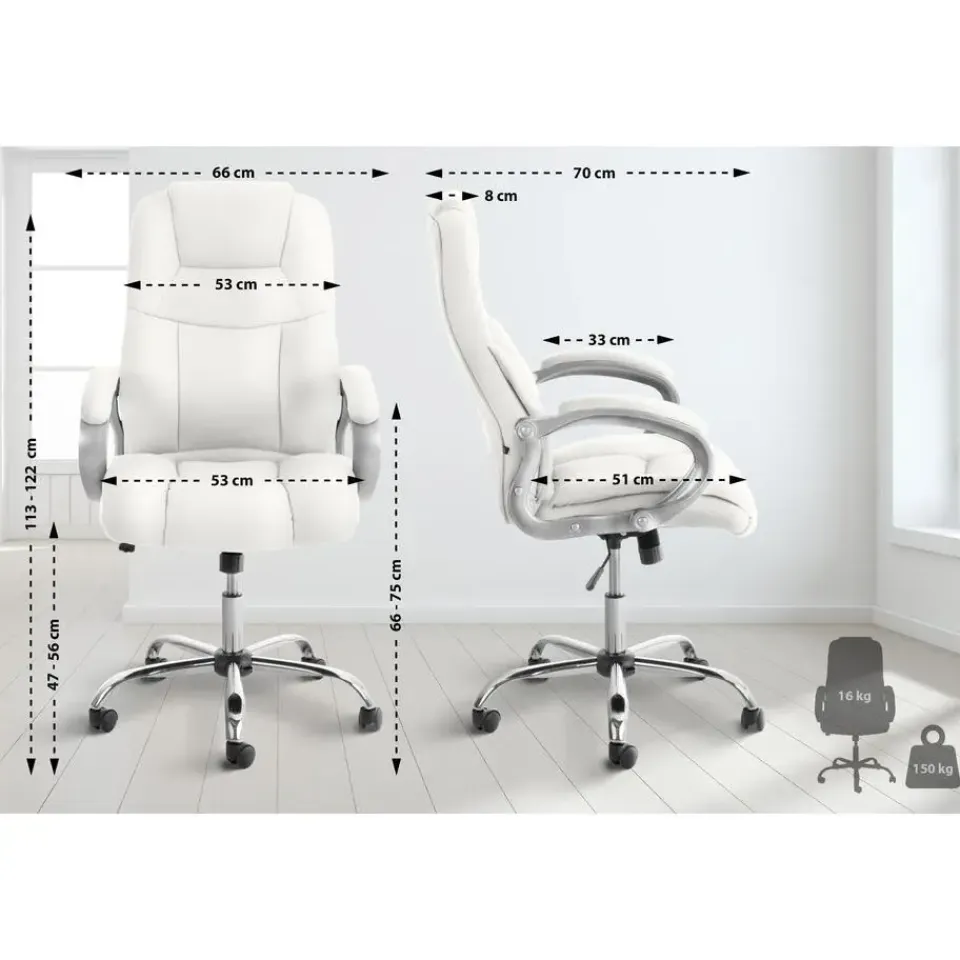 Deze bureaustoel is ideaal voor grotere en zwaardere personen omdat de gasdrukveer op een langdurig gebruik tot 150 kg afgesteld werd.