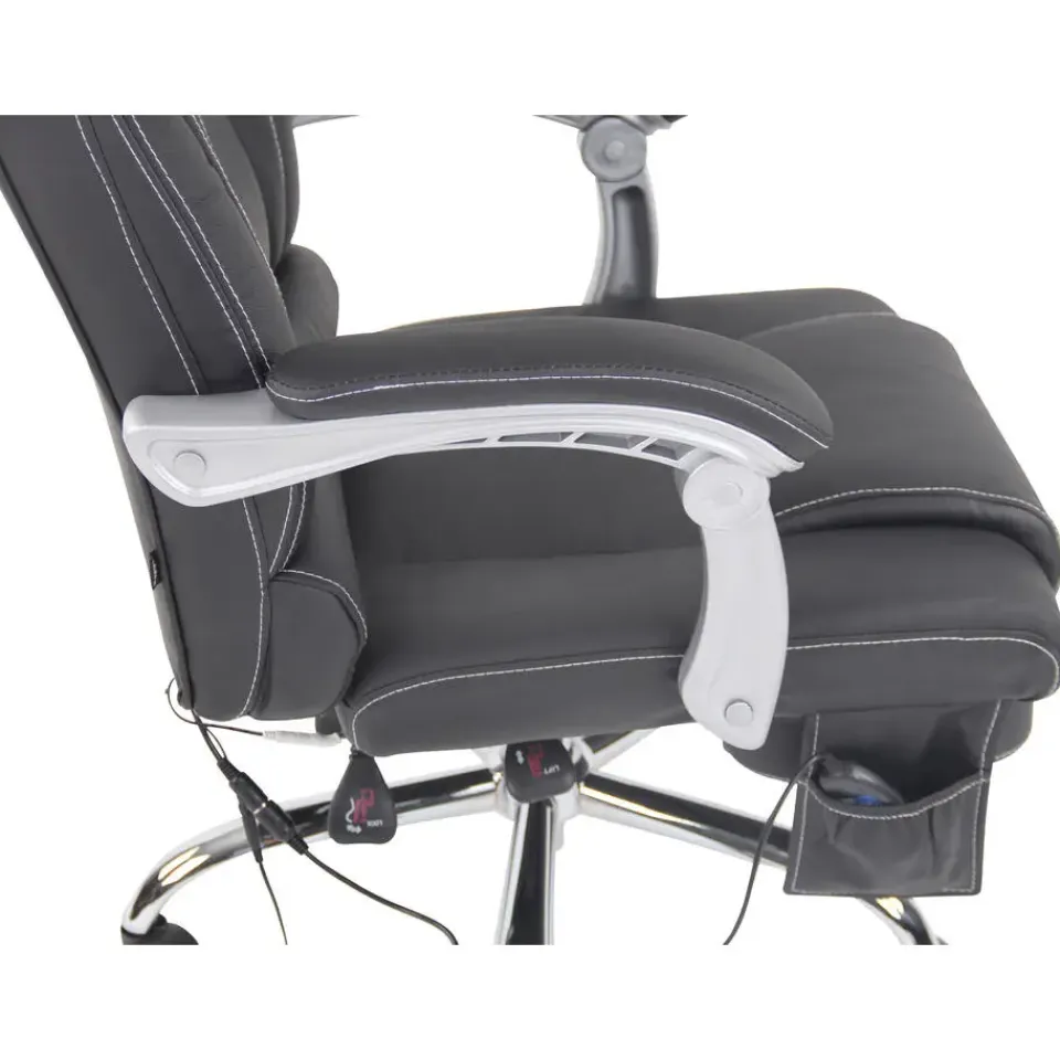 De voetensteun en de kantelbare rugleuning van de ergonomische stoel zorgen bovendien voor een uitzonderlijk zitcomfort – leun achterover en geniet! De bureaustoel is traploos in hoogte verstelbaar en 360 graden draaibaar. Hij staat stevig op het metalen frame en vijf lichtlopende wielen, waardoor de stoel ook op harde vloeren en tapijten mobiel blijft. De massagestoel heeft een draagvermogen van maximaal 136 kg.