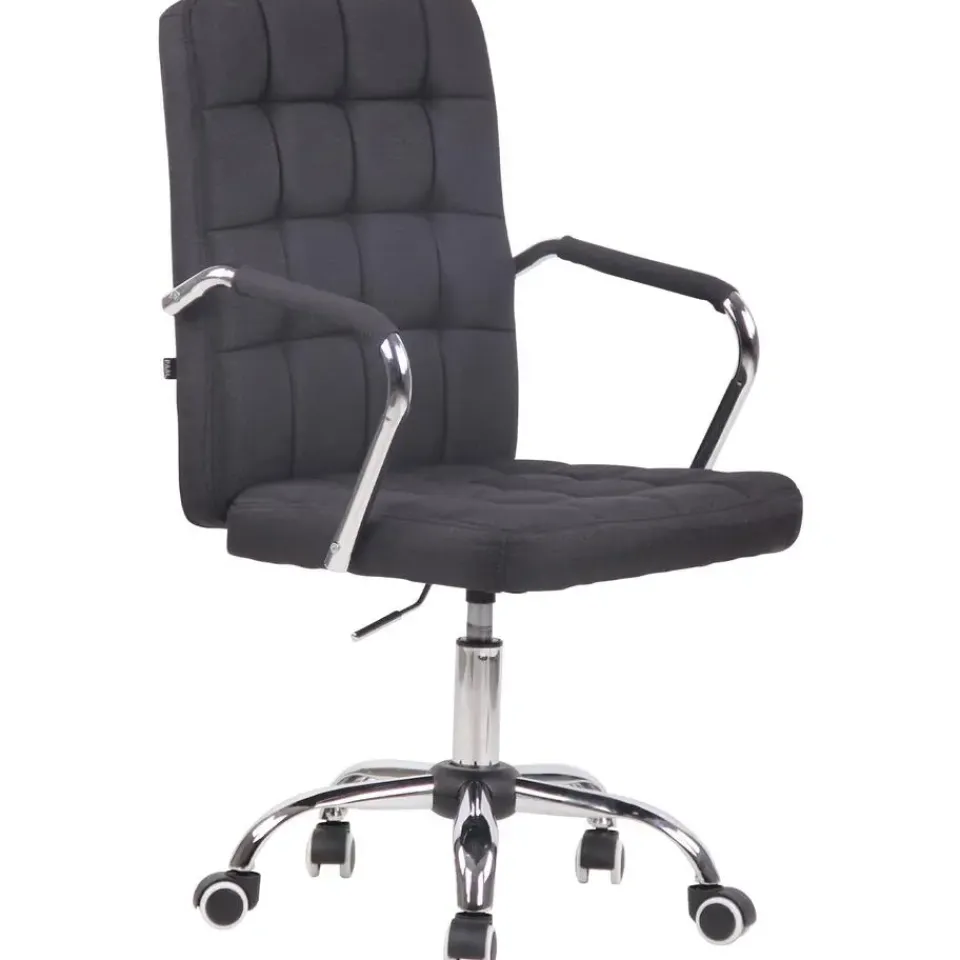 De bureaustoel Terni maakt indruk met zijn moderne vormgeving en biedt een hoog niveau van comfort tijdens het werk dankzij de rugleuning. Deze bureaustoel heeft een zeer hoogwaardige bekleding en is bekleed met kunstleer of stof. Het elegante verchroomde frame en de massief gebogen armleuningen met bekleding geven hem dat extraatje. De zithoogte kan traploos worden ingesteld met de hendel onder de stoel. Dit garandeert een hoog niveau van comfort tijdens het werk over een lange periode. De bureaustoel staat stevig op een metalen frame in chroomlook met vijf licht lopende wielen.