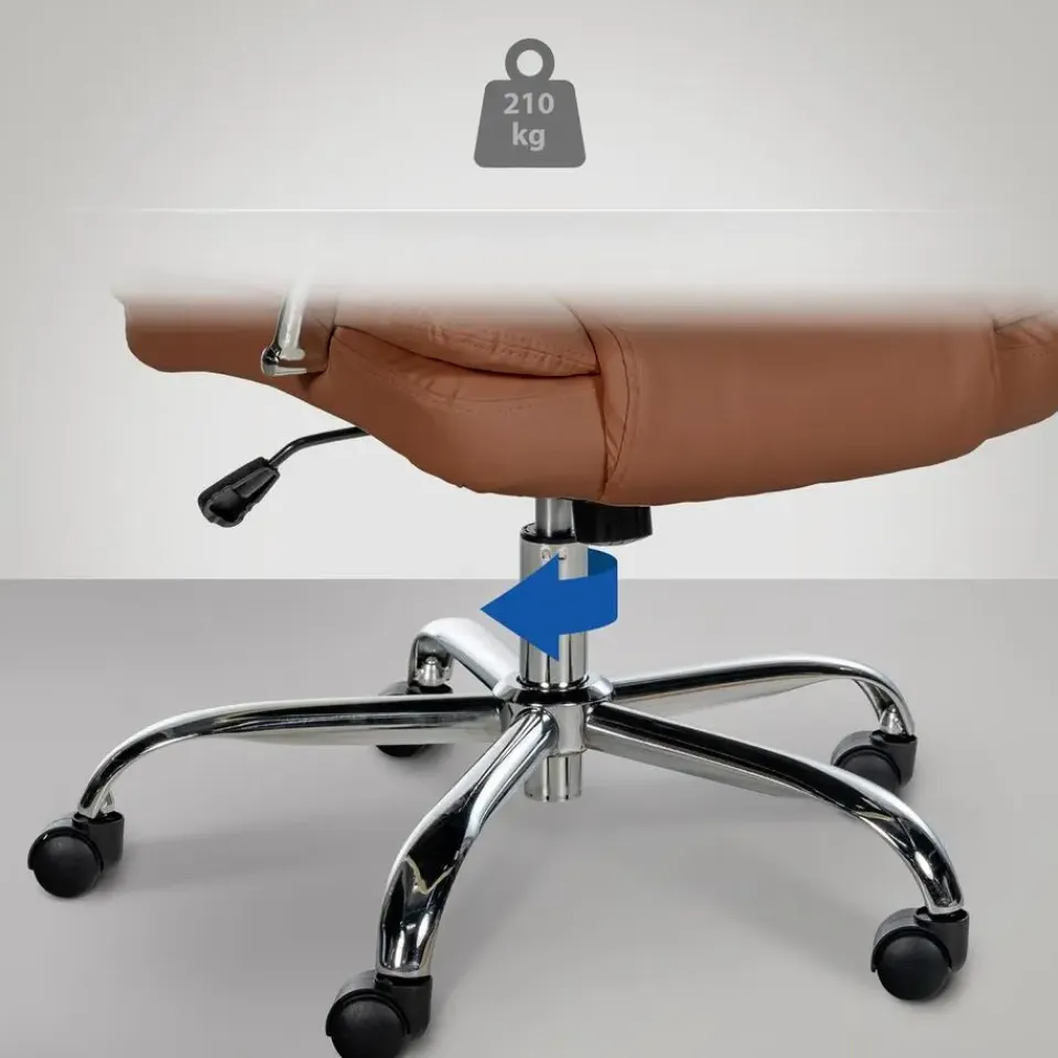 Deze stoel is ideaal voor groteren en zwaardere personen, omdat de gasdrukveer bij een langdurig gebruik tot 210 kg afgesteld is