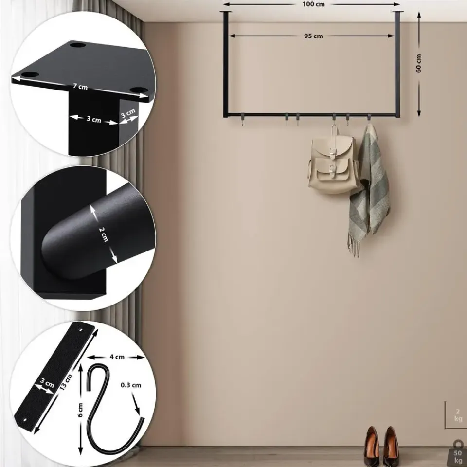 De kledingroede is gemaakt van gepoedercoat staal en is robuust en veerkrachtig, met een draagvermogen tot 50 kilo. De kledingroede is snel en eenvoudig te monteren. Duidelijke montage-instructies en alle benodigde onderdelen worden meegeleverd.