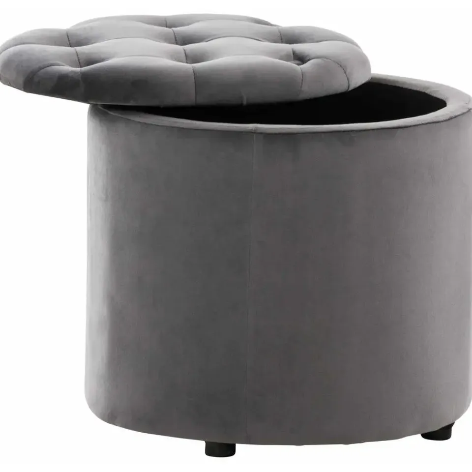 Deze multifunctionele gewatteerde poef met decoratieve knopen is zowel stijlvol als praktisch. Gebruik de kruk als zitplaats of om uw voeten in een ontspannen positie te zetten. Wanneer deze lichte gestoffeerde poef niet wordt gebruikt, kan hij snel worden verplaatst of opgeborgen. Dankzij de bekleding kan hij op elk moment comfortabel zitten. De vloerbeschermers onder de kruk voorkomen dat er krassen op de vloer komen.
