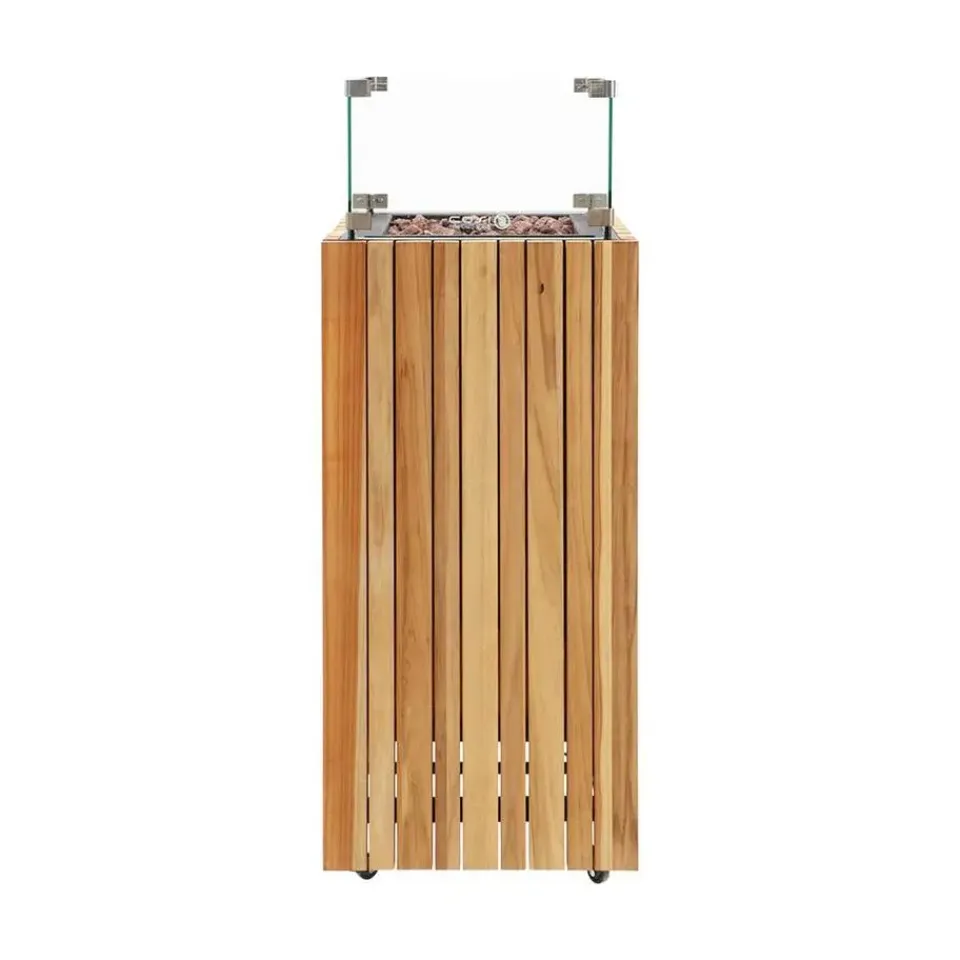 Deze gashaard van Cosi Fires heeft een strak frame van onderhoudsvrij aluminium. De Cosipillar square heeft een glazen ombouw wat zorgt voor bescherming. Het frame is prachtig afgewekrt met teakhout wat zorgt voor een extra warme uitstraling. Deze Cosipillar past in elke tuin!