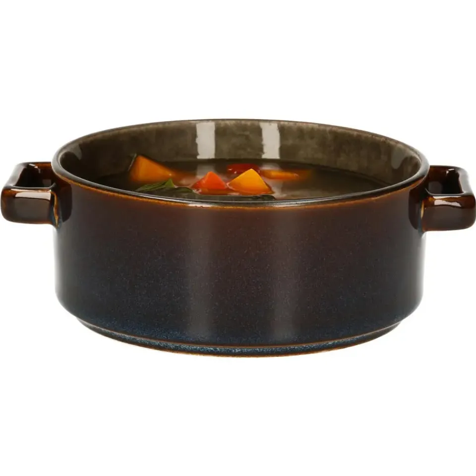 Kommetjes/soepkommen/schaaltjes voor o.a. dessert, soep en ontbijt. Gemaakt van stevig geglazuurd luxe porselein in de kleuren groen/bruin. Afmeting: D13 x 5.5 cm/450 ML. Handige stapelbare kommetjes voor in elk huishouden. Ontbijtschaaltjes, soepkommen. Merk: Cosy & Trendy.