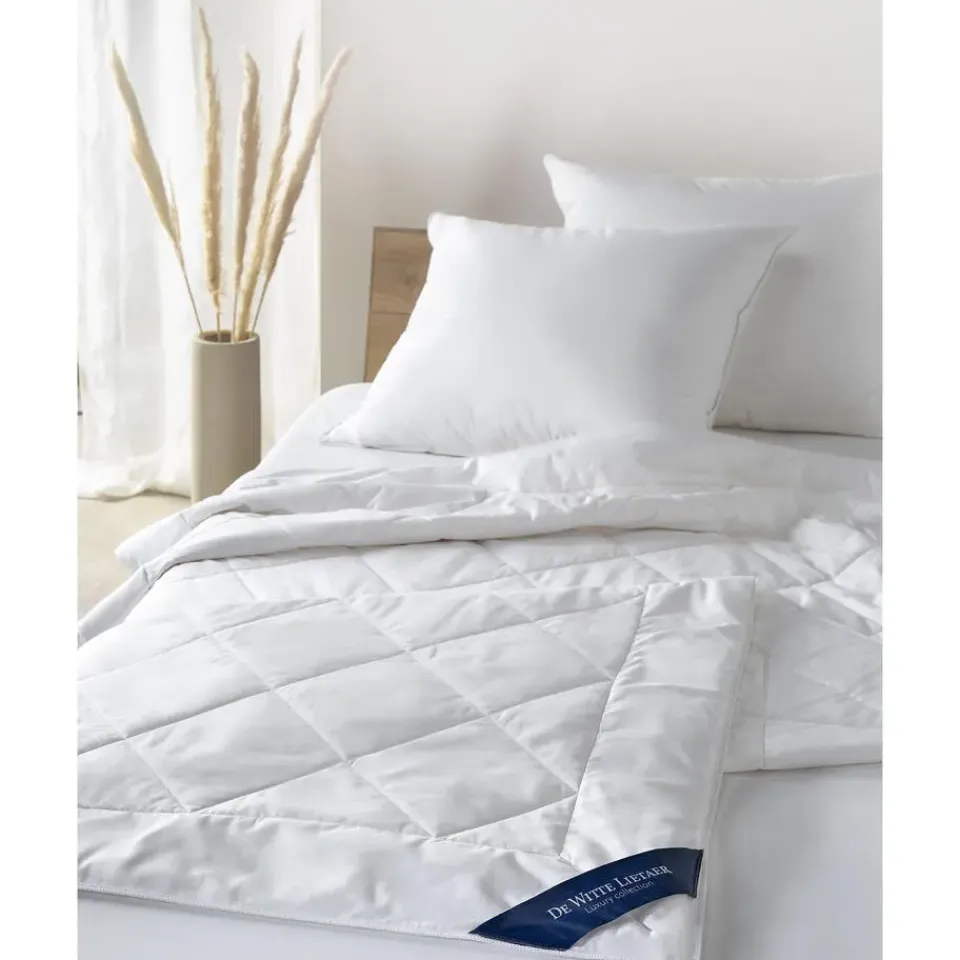 De Witte Lietaer Dekbed Doodle. Doodle is een zeer licht lits jumeaux zomer-dekbed in een mooie katoenen kwaliteit, wat heerlijk is op warme dagen. Het vulgewicht van het dekbed is 175 g/m2 en valt daarmee in een lichte warmteklasse. Het dekbed is anti huisstofmuit, vochtregulerend en ademend.