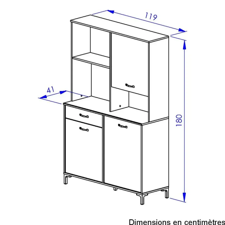 - 119cm x 41cm x 180cm (lengte x breedte/diepte x hoogte)