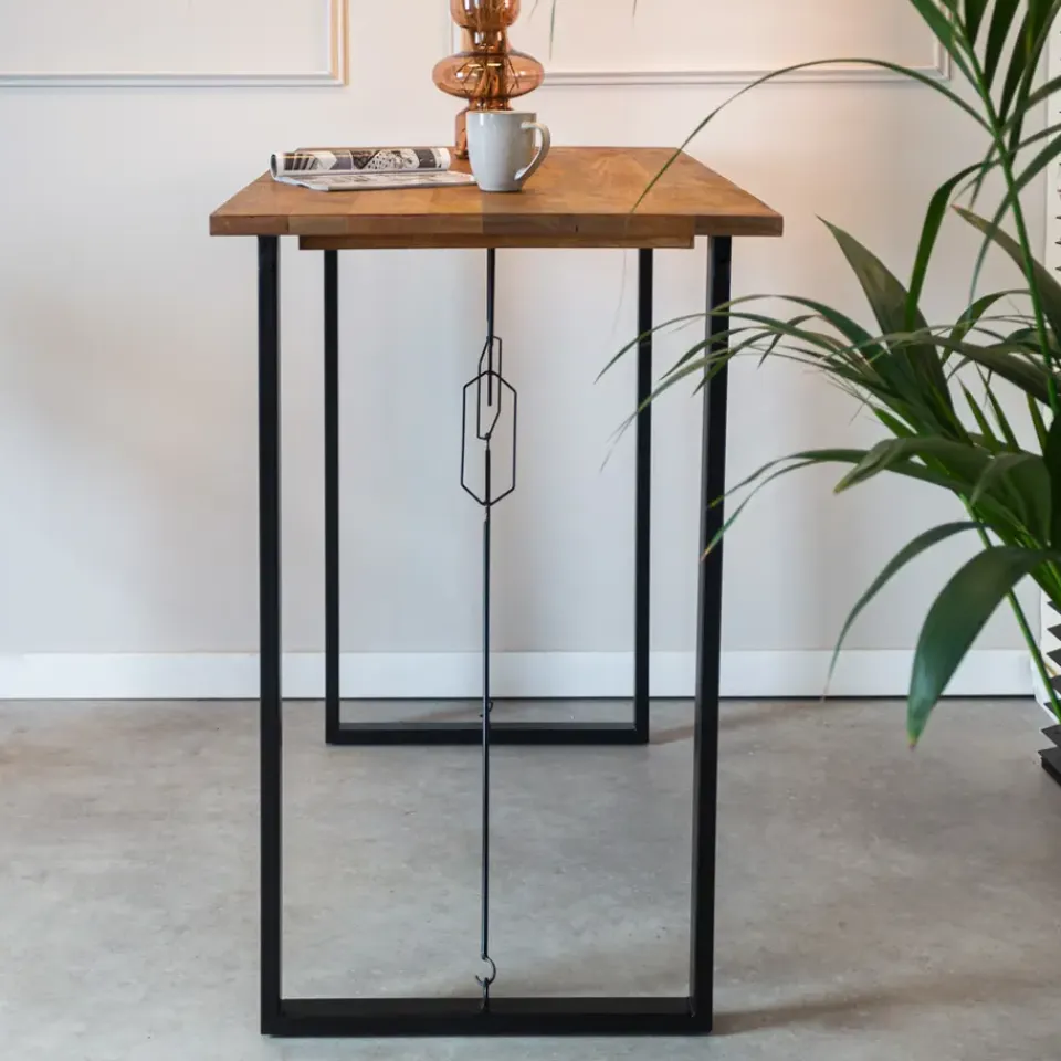 De poten van de bartafel zijn gemaakt van zwart gepoedercoat metaal. De combinatie van het metaal en het mangohout zorgen voor de perfecte industriële look.