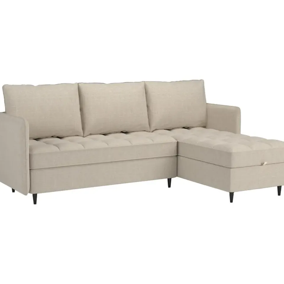 De bank kan ook worden gebruikt als slaapbank, waardoor hij ideaal is voor logés. Het ingebouwde opbergvak onder de chaise longue is perfect om beddengoed, dekens, kussens en andere benodigdheden netjes in op te bergen.