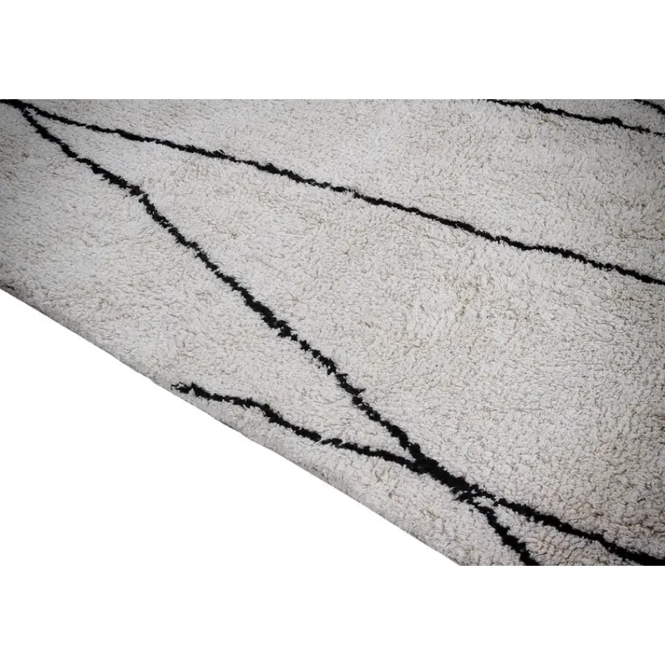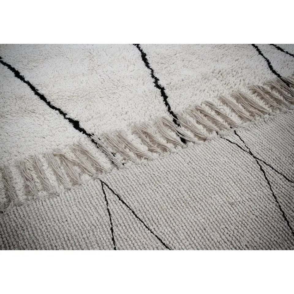 Dit prachtige kleed is volledig gemaakt van 100% hoogwaardig katoen, wat zorgt voor een zacht en comfortabel gevoel onder de voeten. Het vloerkleed heeft een klassieke Berber-stijl met speelse franjes aan de uiteinden, waardoor het een bohemian tintje aan elke ruimte toevoegt.