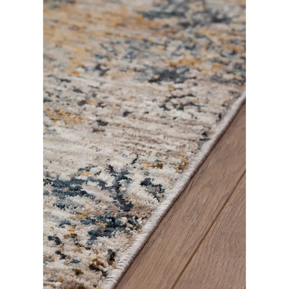 Dit vloerkleed, gemaakt van 100% polyester, is zowel zacht als duurzaam. De combinatie van blauwe en beige tinten creëert een prachtig, abstract patroon dat gemakkelijk te combineren is met verschillende interieurstijlen. De poolhoogte van 8 mm zorgt voor een heerlijk comfortabel gevoel onder de voeten.