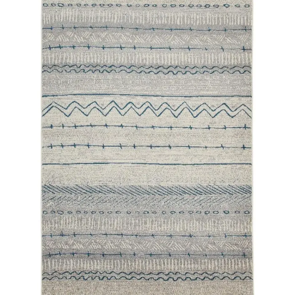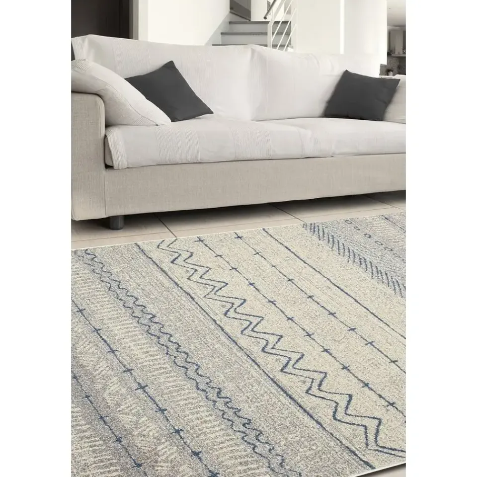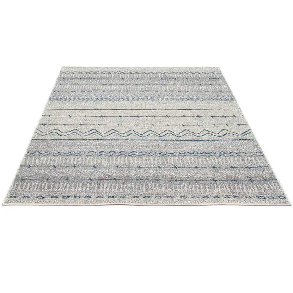 Het Casa B Ivory Blue vloerkleed combineert een speelse, etnisch geïnspireerde print met een moderne uitstraling, waardoor het een veelzijdige toevoeging is aan elk interieur.